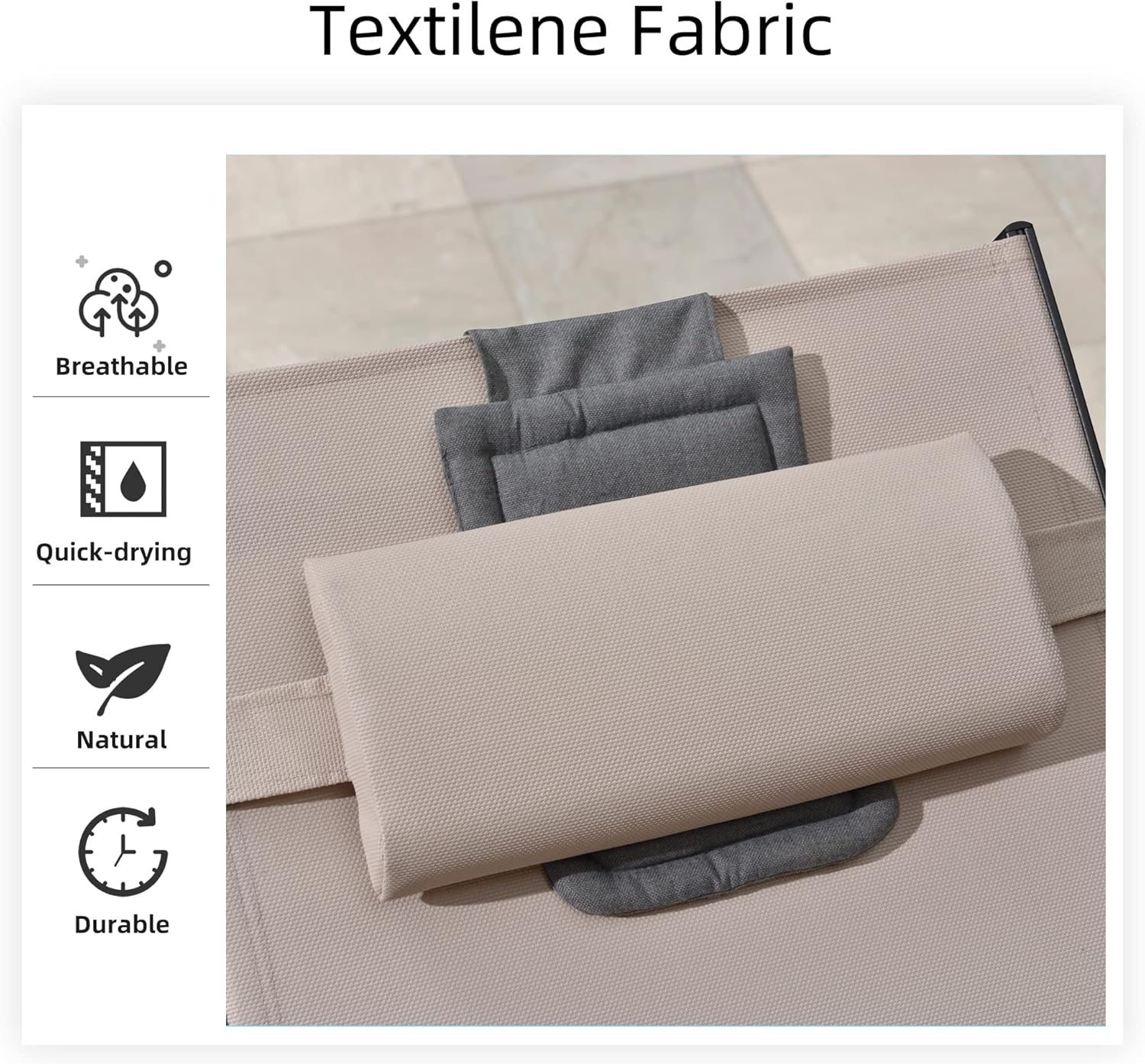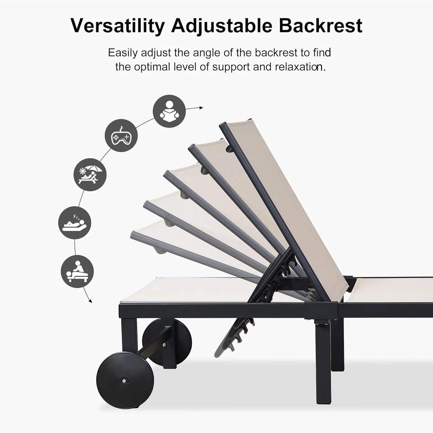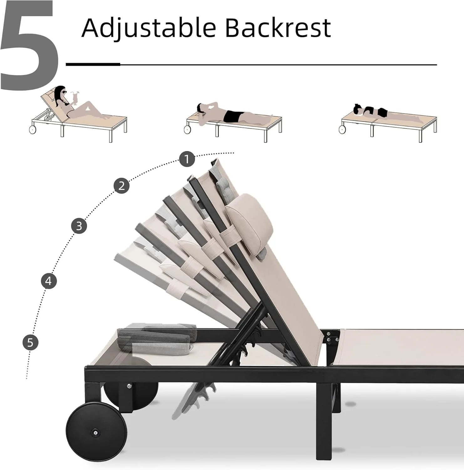 PURPLE LEAF Patio Tanning Lounge Chair Set with Face Down Hole Outdoor Aluminum Adjustable Reclining Chairs Wheels Pillows and Table for Poolside Beach Sunbathing Lounger, Beige