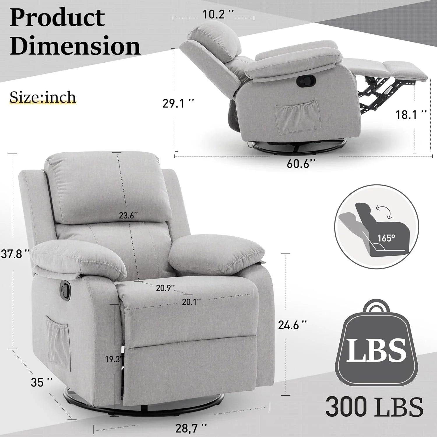Reclining rocking chair 360 degree rotating fabric sliding reclining chair