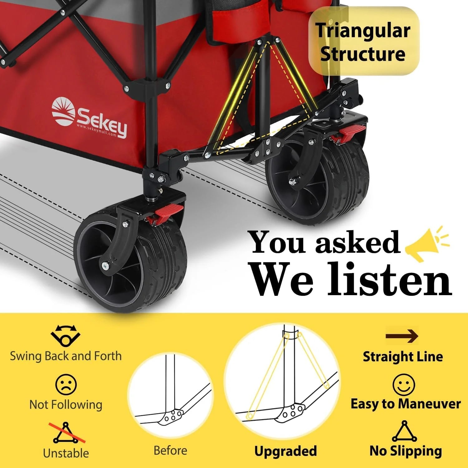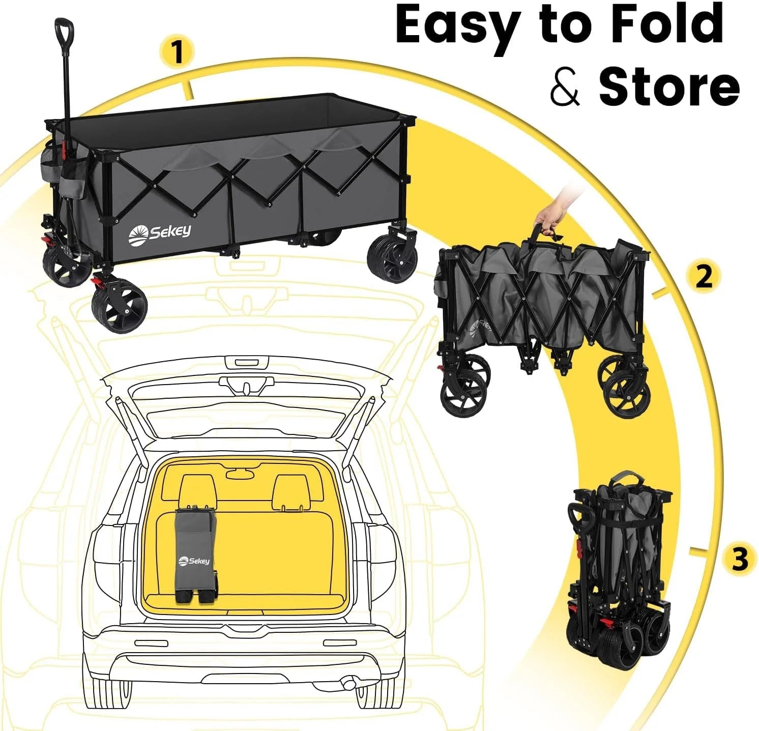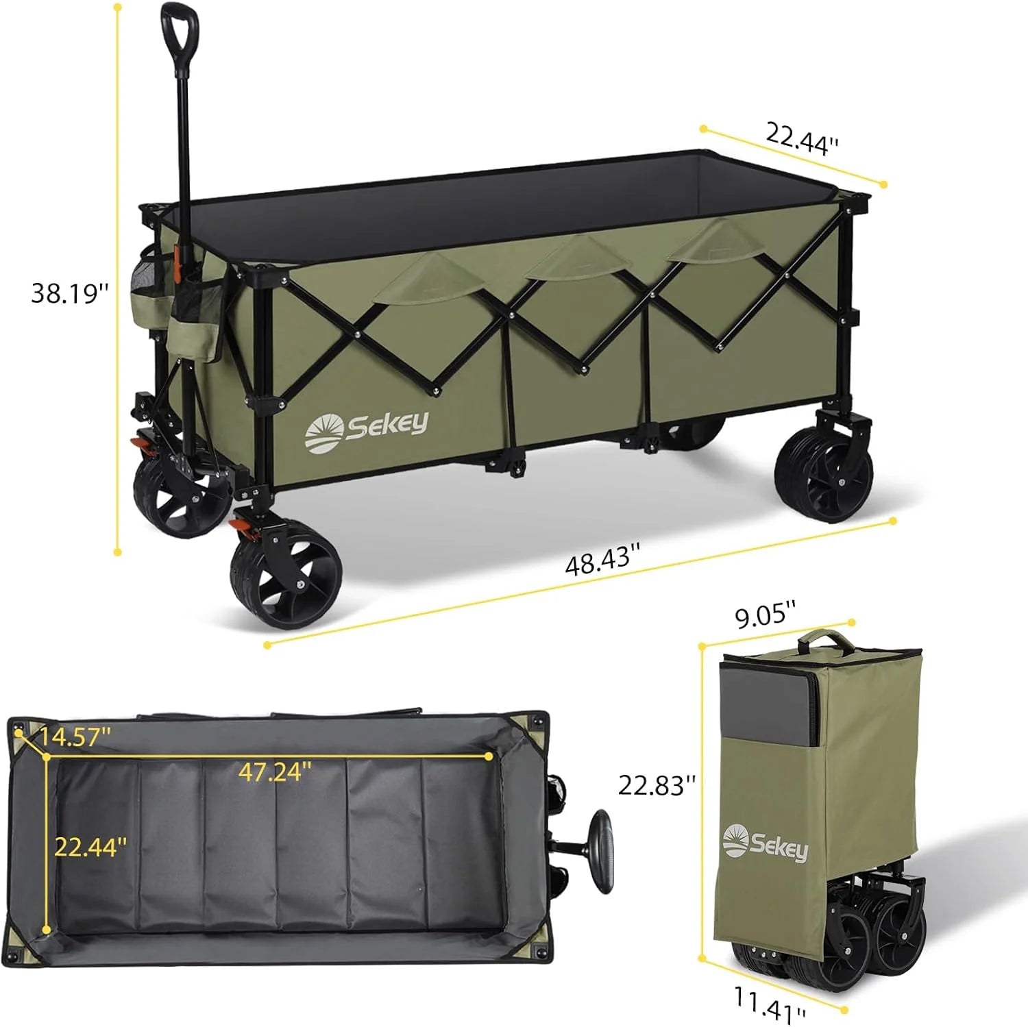 Sekey 48 Inch Long Foldable Extended Travel Cart, 440 Lbs Load Capacity, Heavy Duty 300 Liter Folding Multi-Purpose Garden Cart