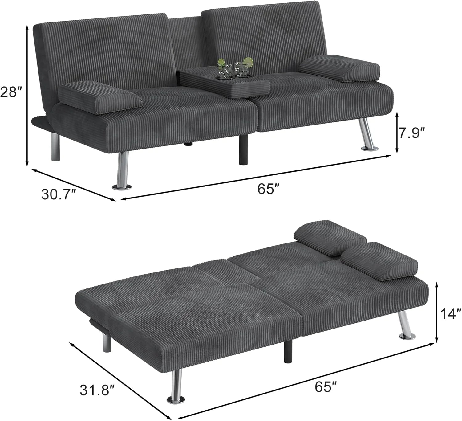 - Convertible Futon Sofa Bed: Convert from a sofa to a comfy bed in just a few seconds with the removable arm pillows and adjustable backrests for a cosy rest in your living room!