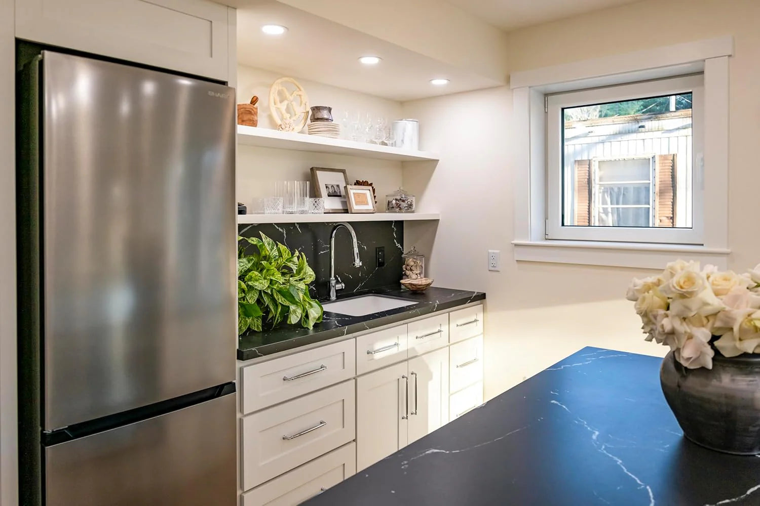 An innovative space-saving refrigerator with well-designed storage solutions, the SJB1255GS includes two shelves, a spacious 4.2 cu. ft. freezer with three drawers, and a removable wine rack for quick and easy organization.