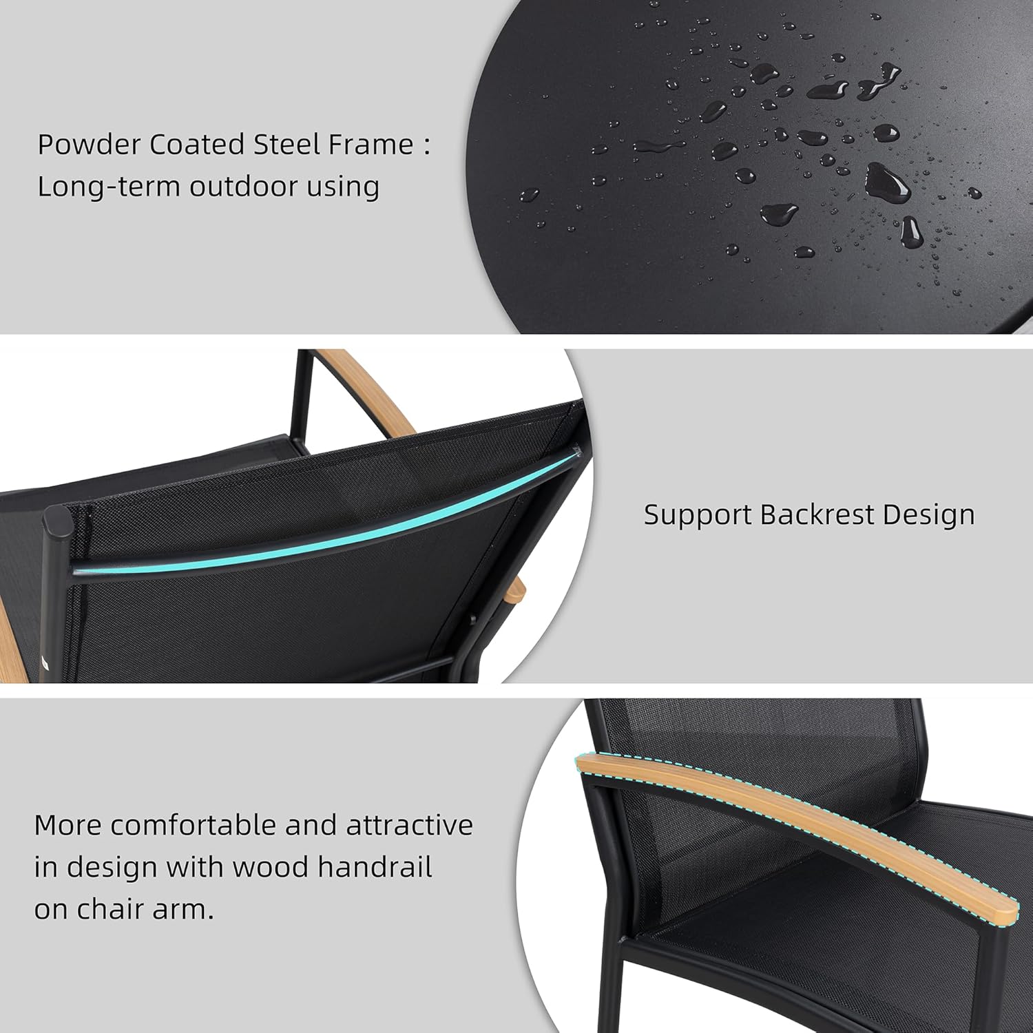 Shintenchi 3 Pieces Patio Bistro Sets, Outdoor Textilene Fabric Conversation Bistro Set, Textilene Fabric Front Porch Chairs Small Patio Furniture Set with Table for Lawn,Garden,Balcony (Black)