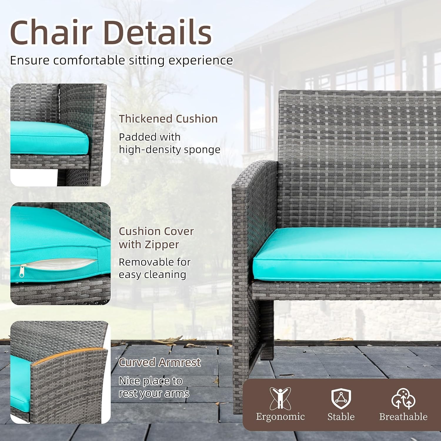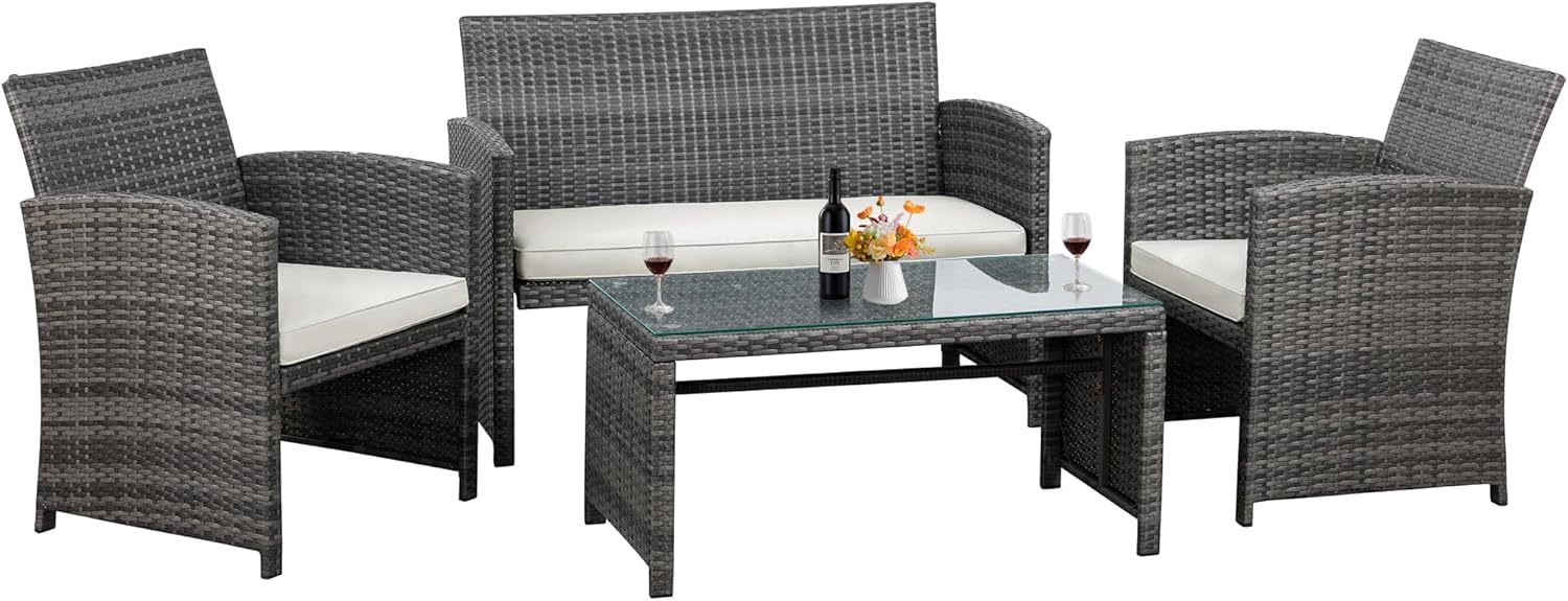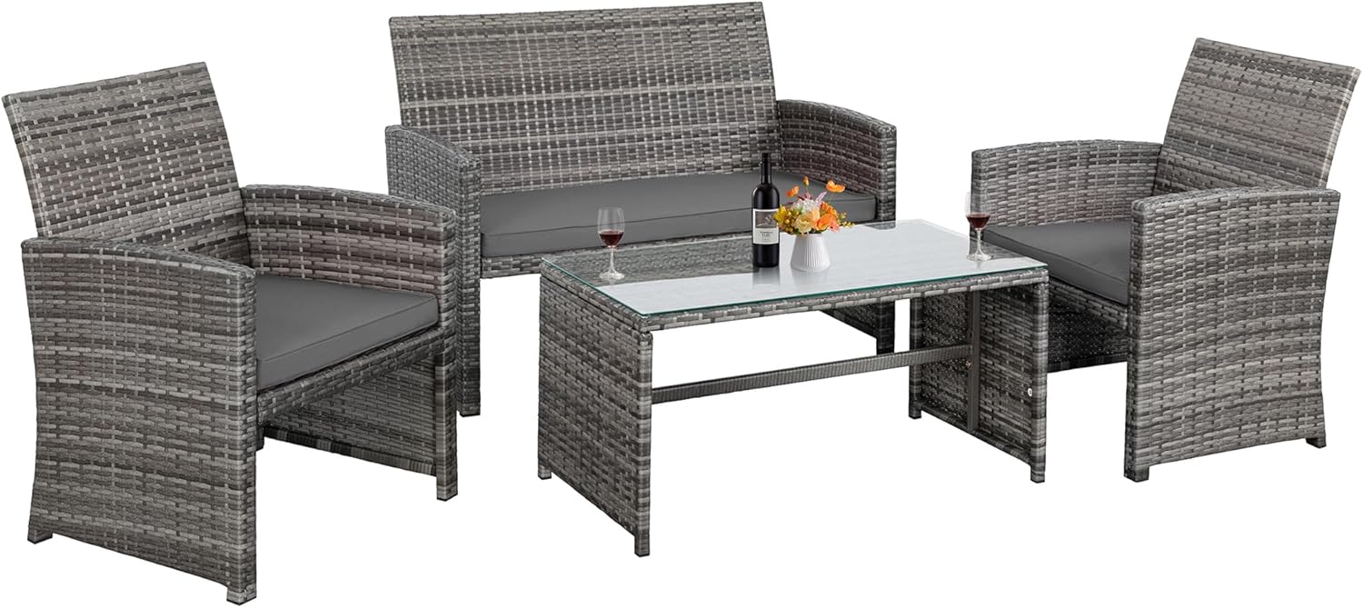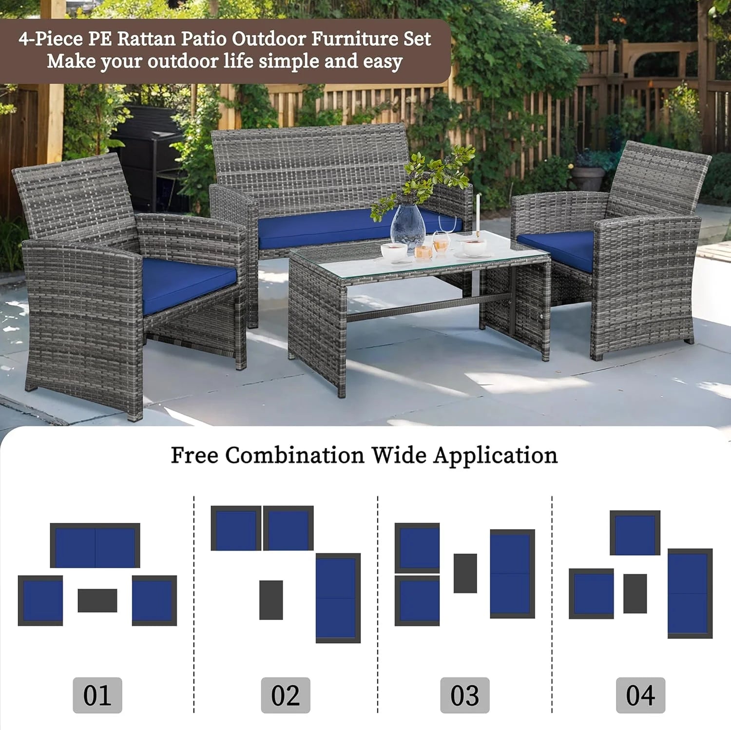 Shintenchi 4 Piece Patio Ratten Set Outdoor Furniture Set Wicker Conversation Set