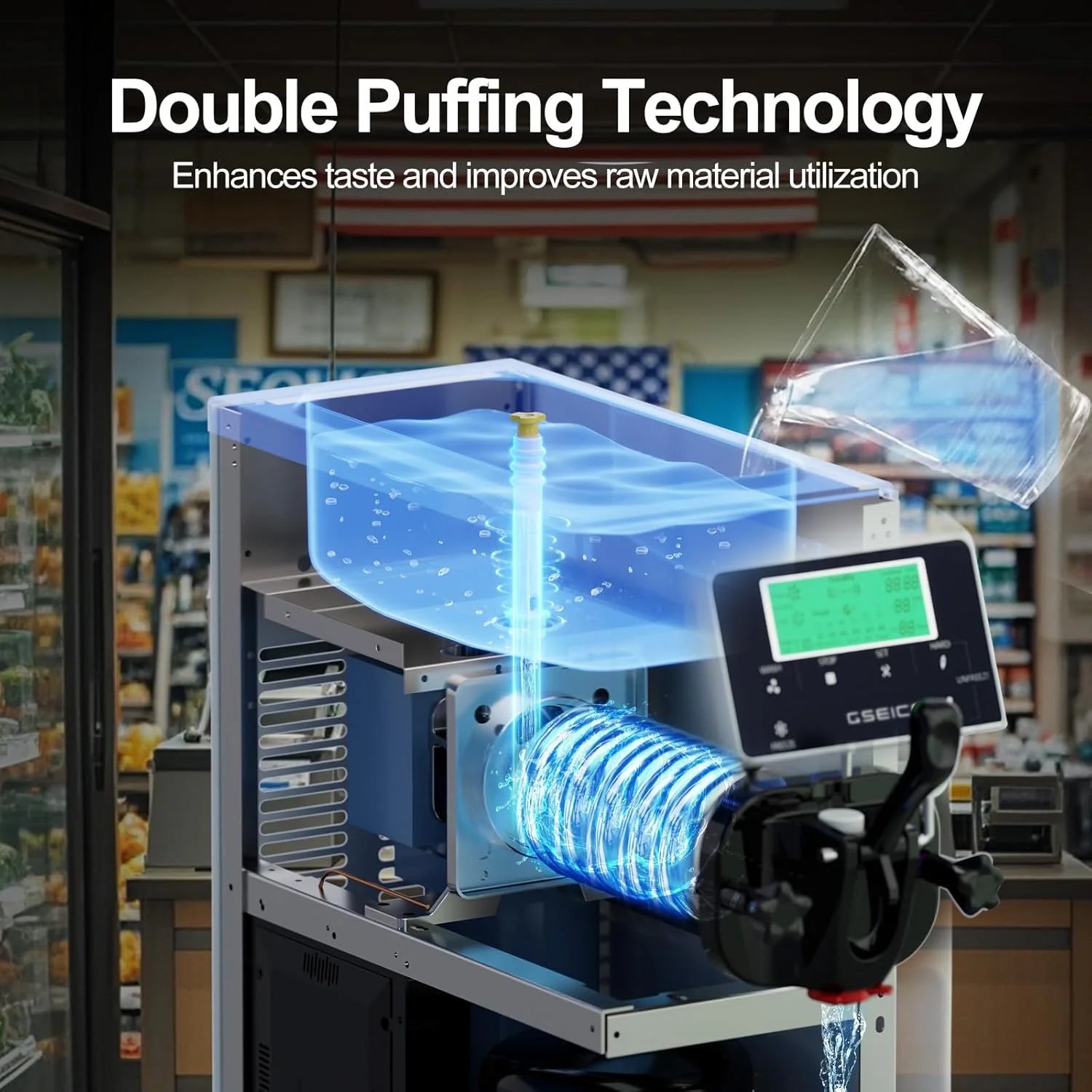 - Space-Saving & Profitable: Compact design as a sheet of A4 paper fits into commercial kitchens easily, this soft serve ice cream machine with Own patented double puffing technology can improve 35%-45% puffing rate, enhance the taste and save more raw materials, increase profitability for you