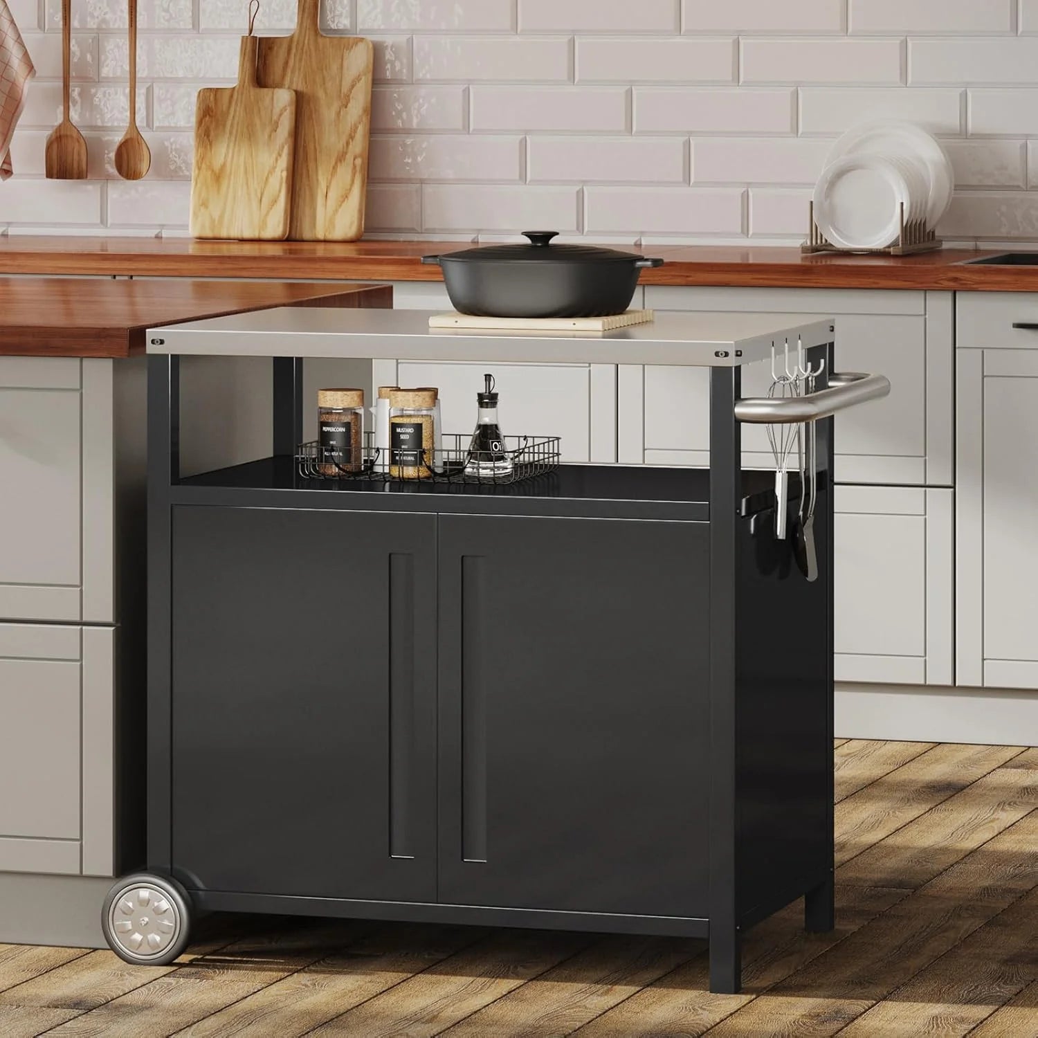 - 【Multifunction】The grill cart can be used indoors and outdoors. A dining cart table, working table cart, food prep table flattop.