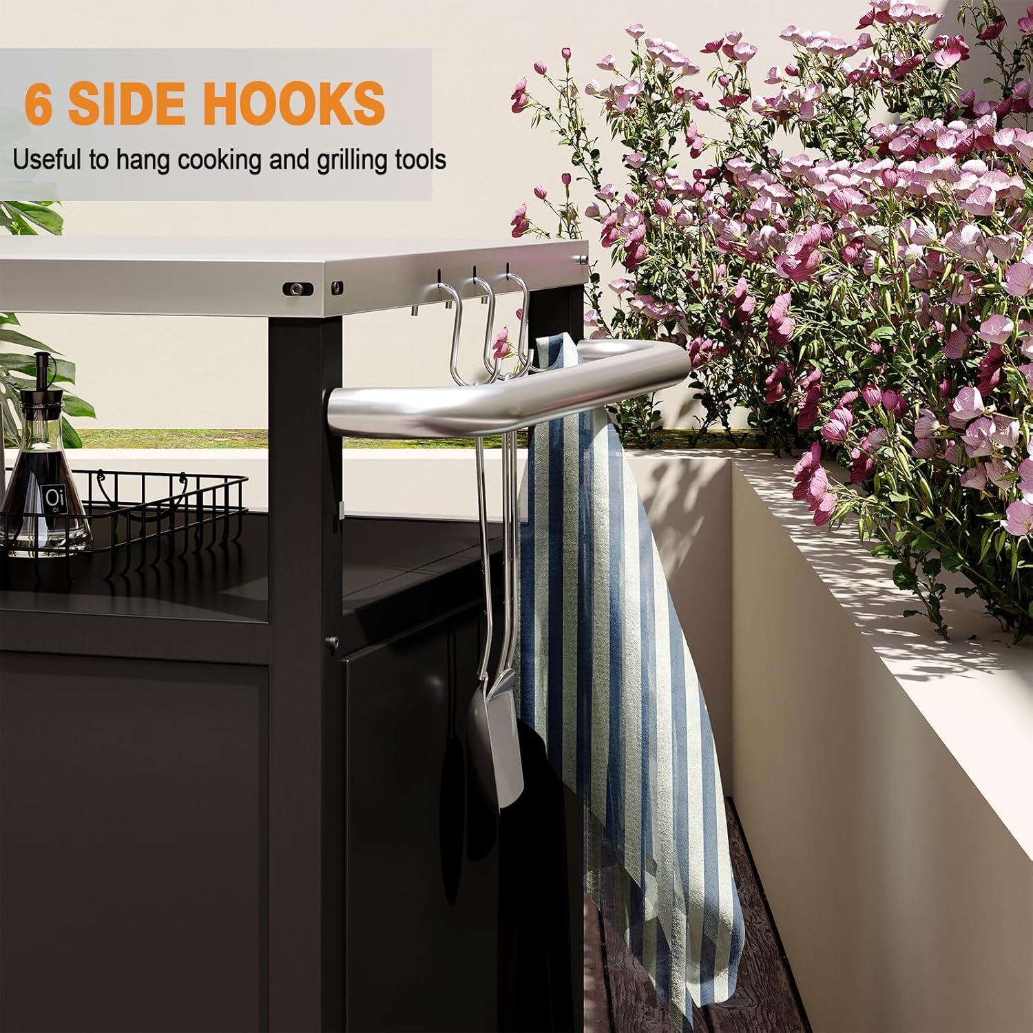 - 【Sturdy Design For Tough Task】 Stainless steel with anti-corrosion coating, perfect for placing a pizza oven pizza oven and pizza oven accessories, portable grill or griddle; Also creating ample workplace for outdoor cooking, kitchen or serving area with an easy to clean finish. The load capacity of the table top is 440 lbs and the shelves are 100 lbs.