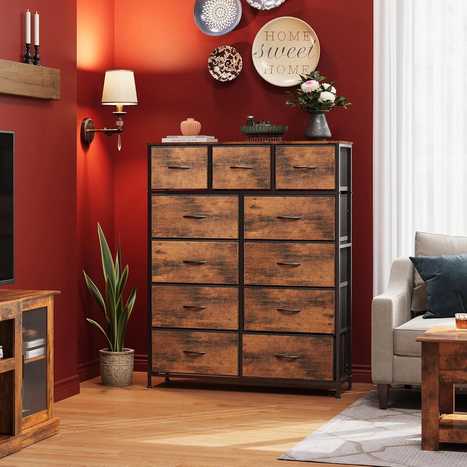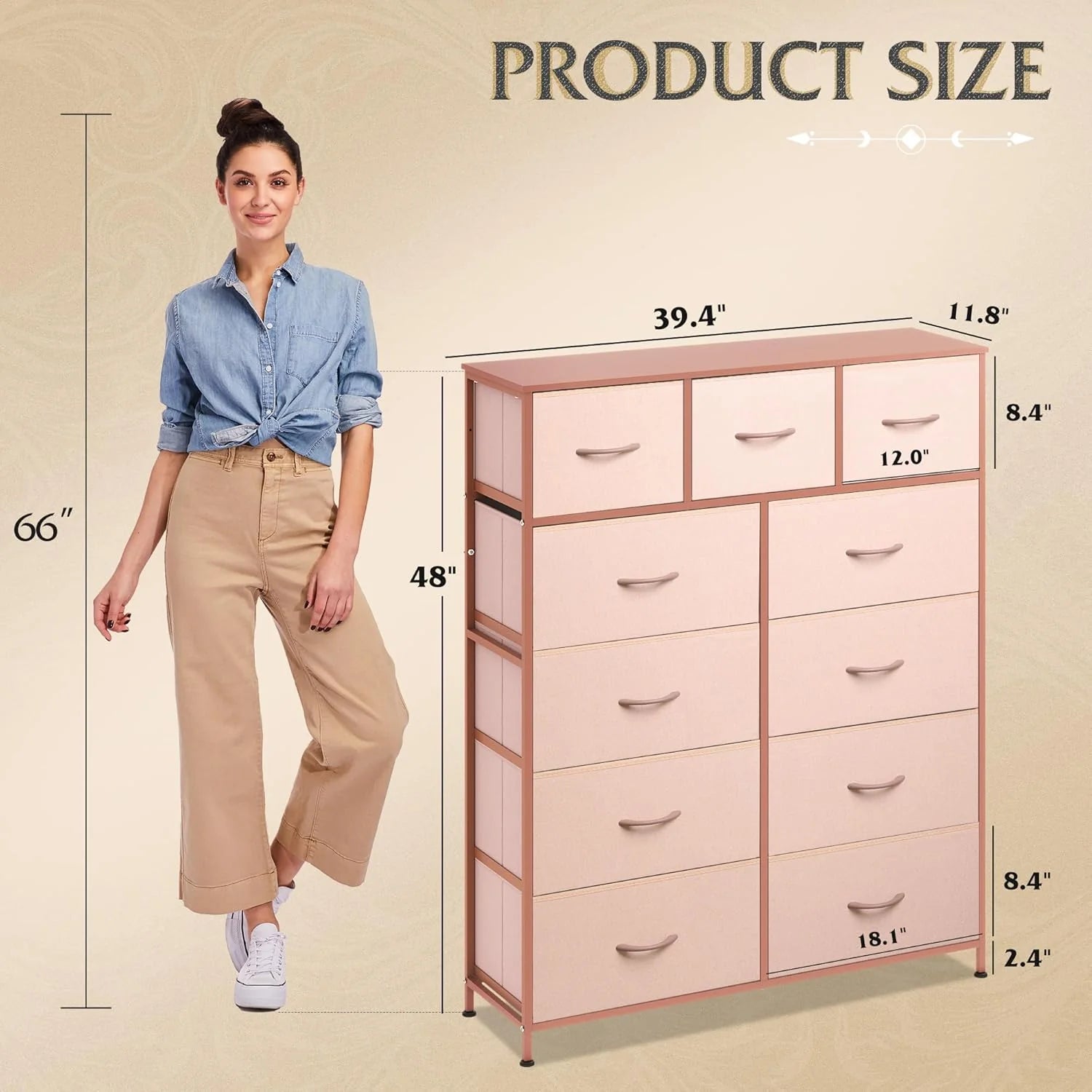 Storage Organizer Unit with 11 Fabric Bins, Storage Drawers Organizer with Steel Frame, Tall Storage Tower Organizaton