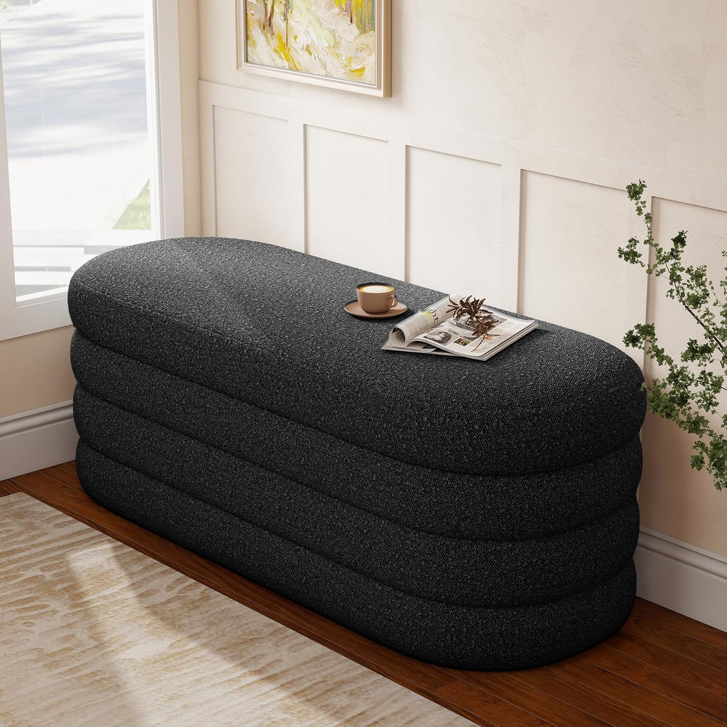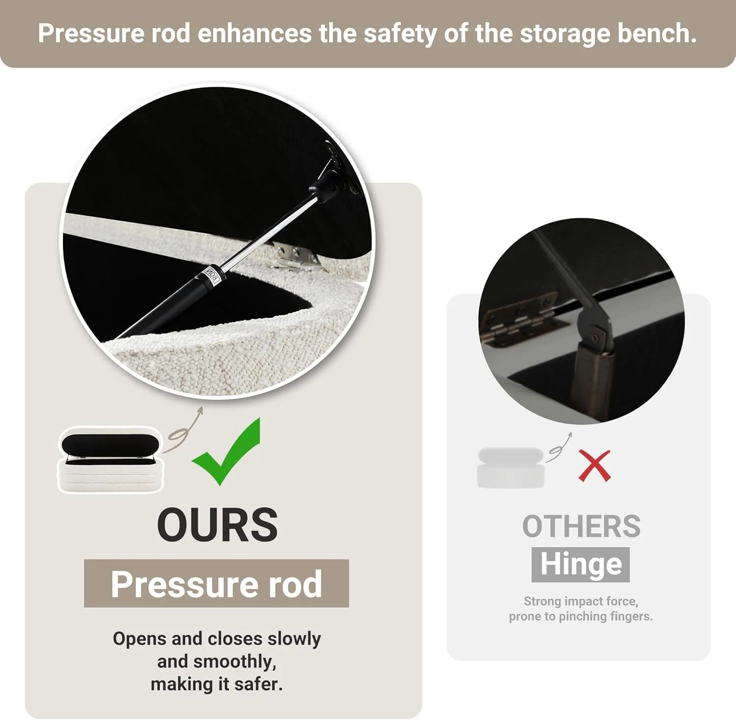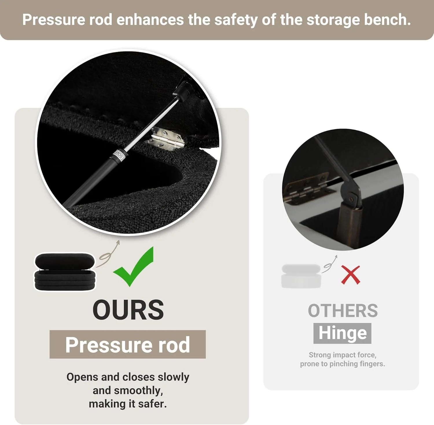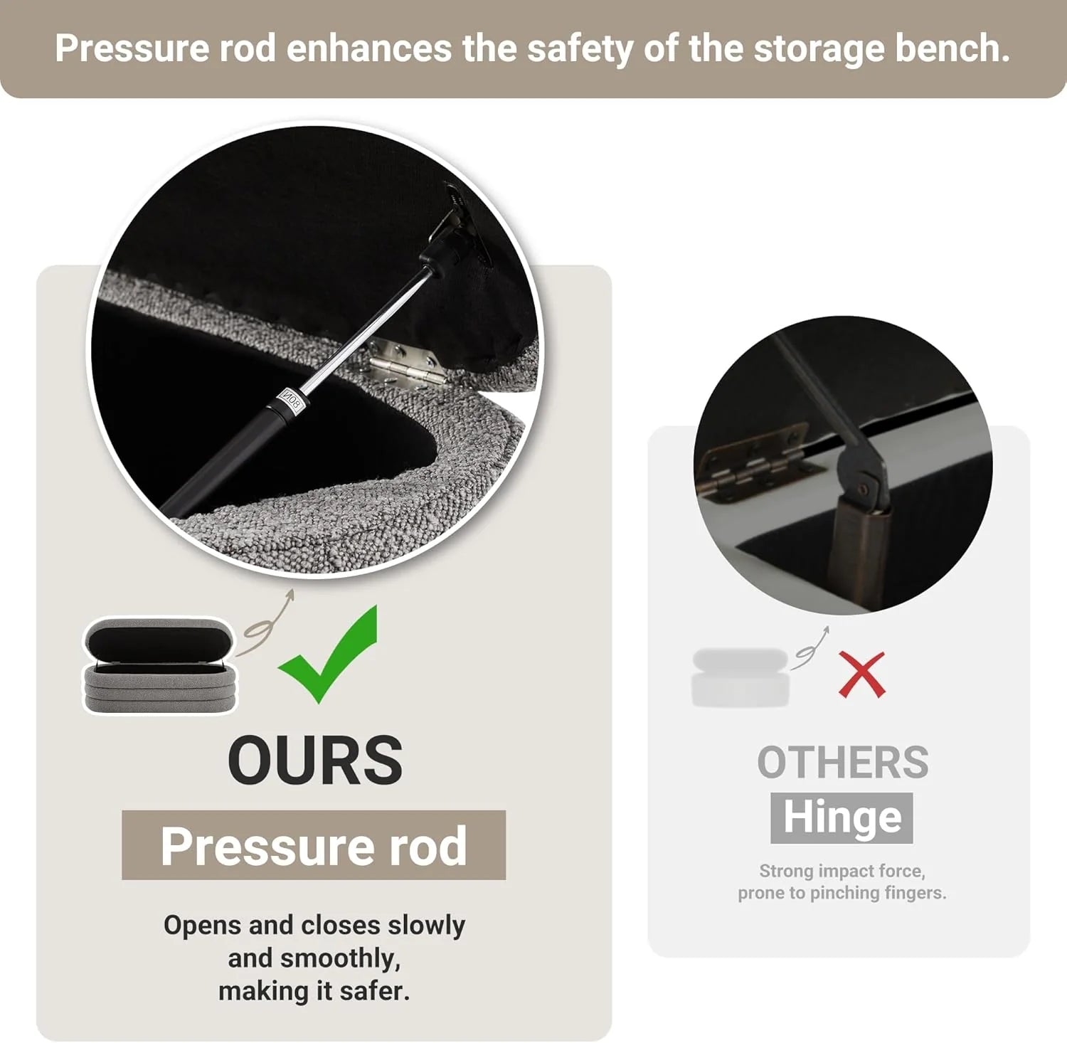 Storage Ottoman Bench 49.2 Inch Upholstered Fabric Storage Bench