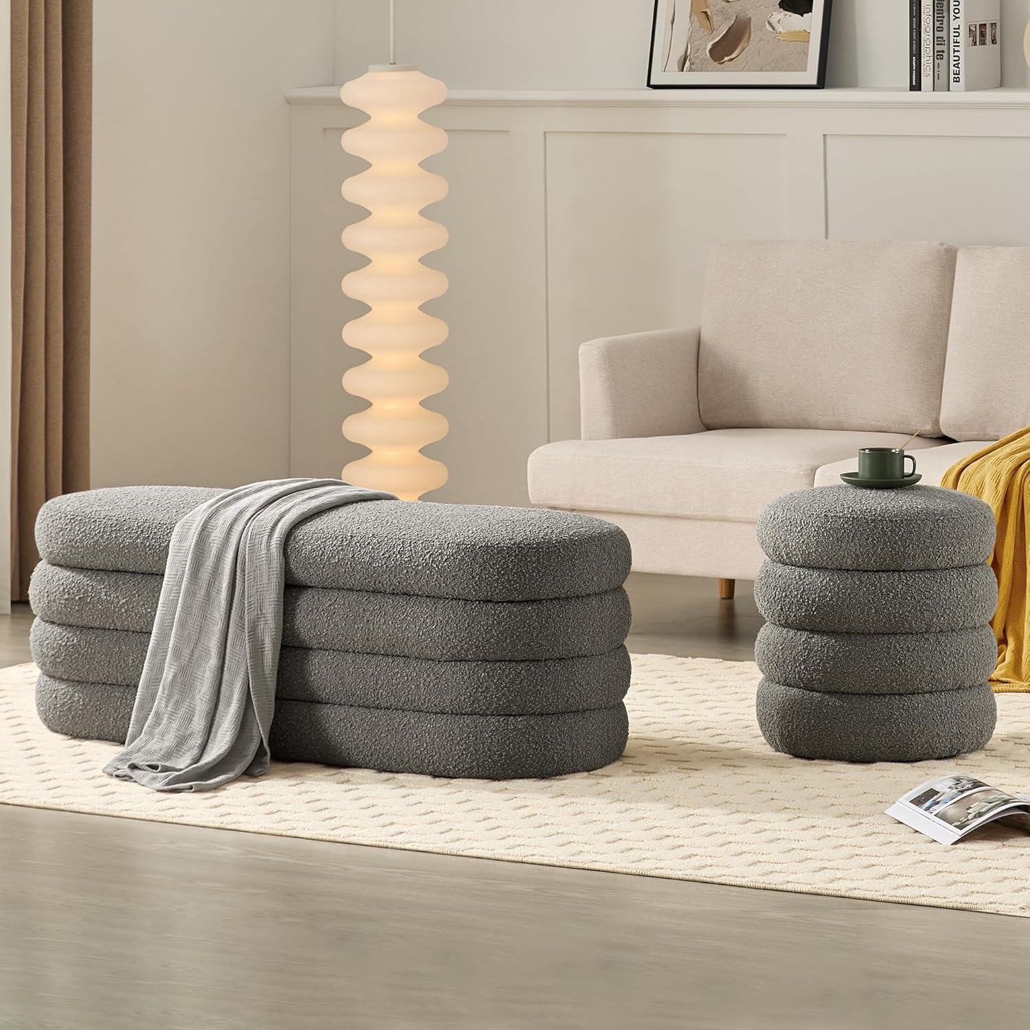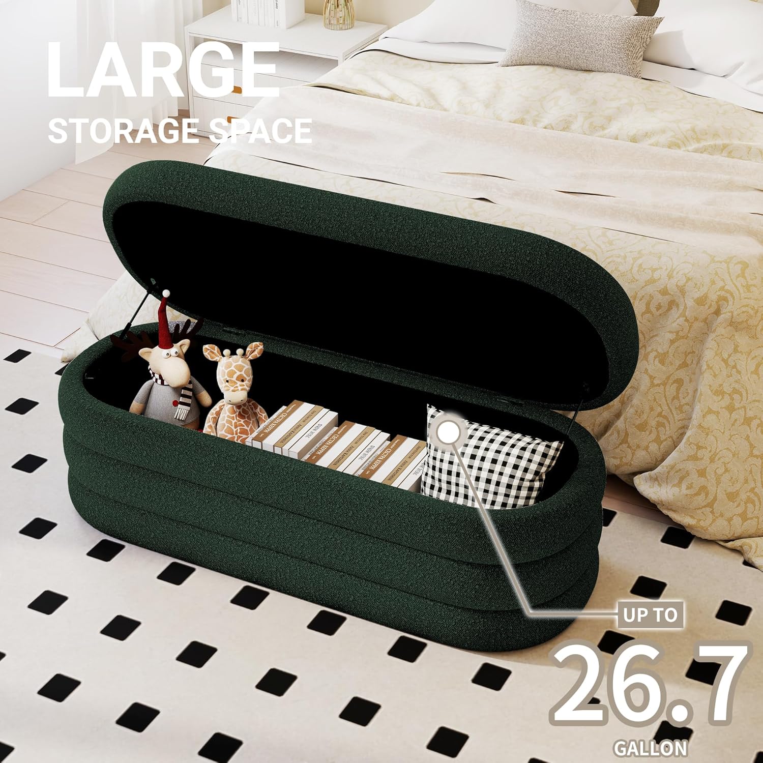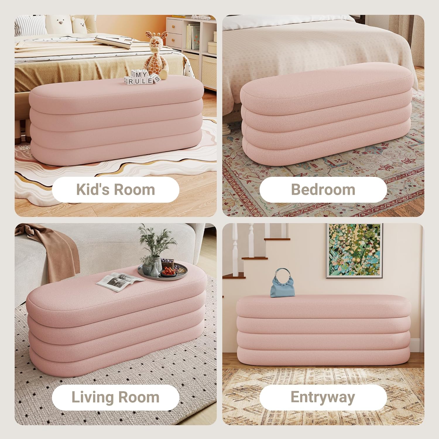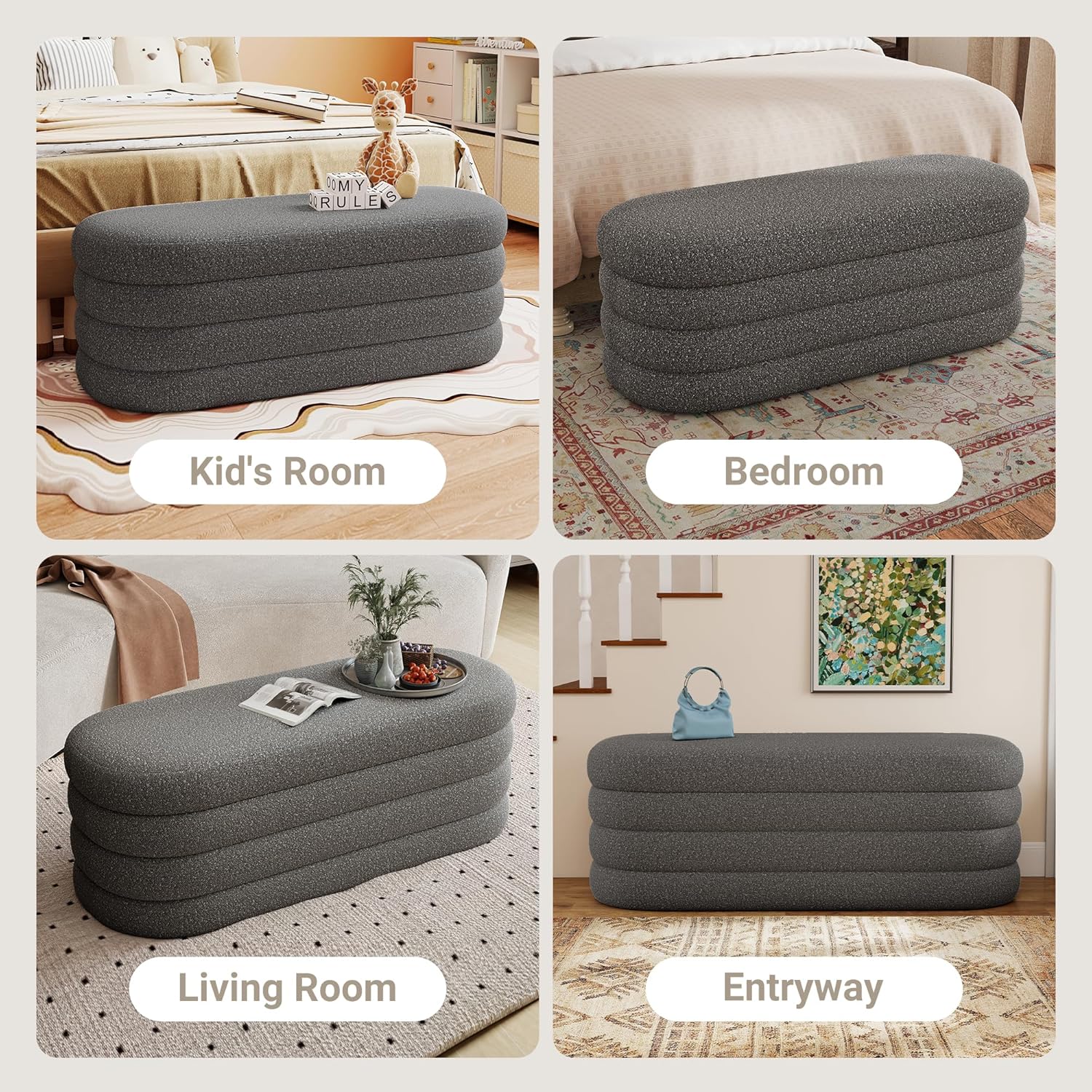 Storage Ottoman Bench 49.2 Inch Upholstered Fabric Storage Bench