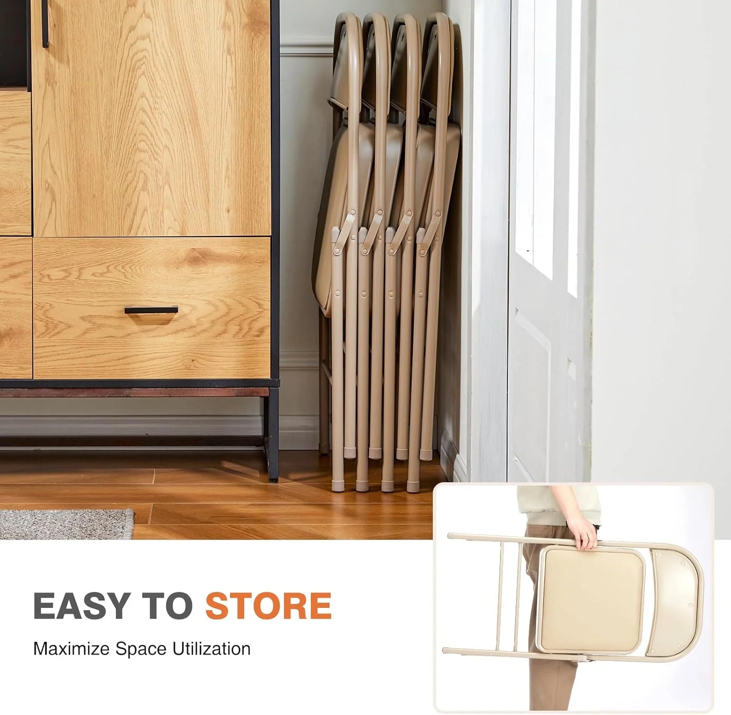 Sweetcrispy Folding Chair 12 Pack, Leather Padded Folding Chairs, Sturdy Metal Foldable Chairs