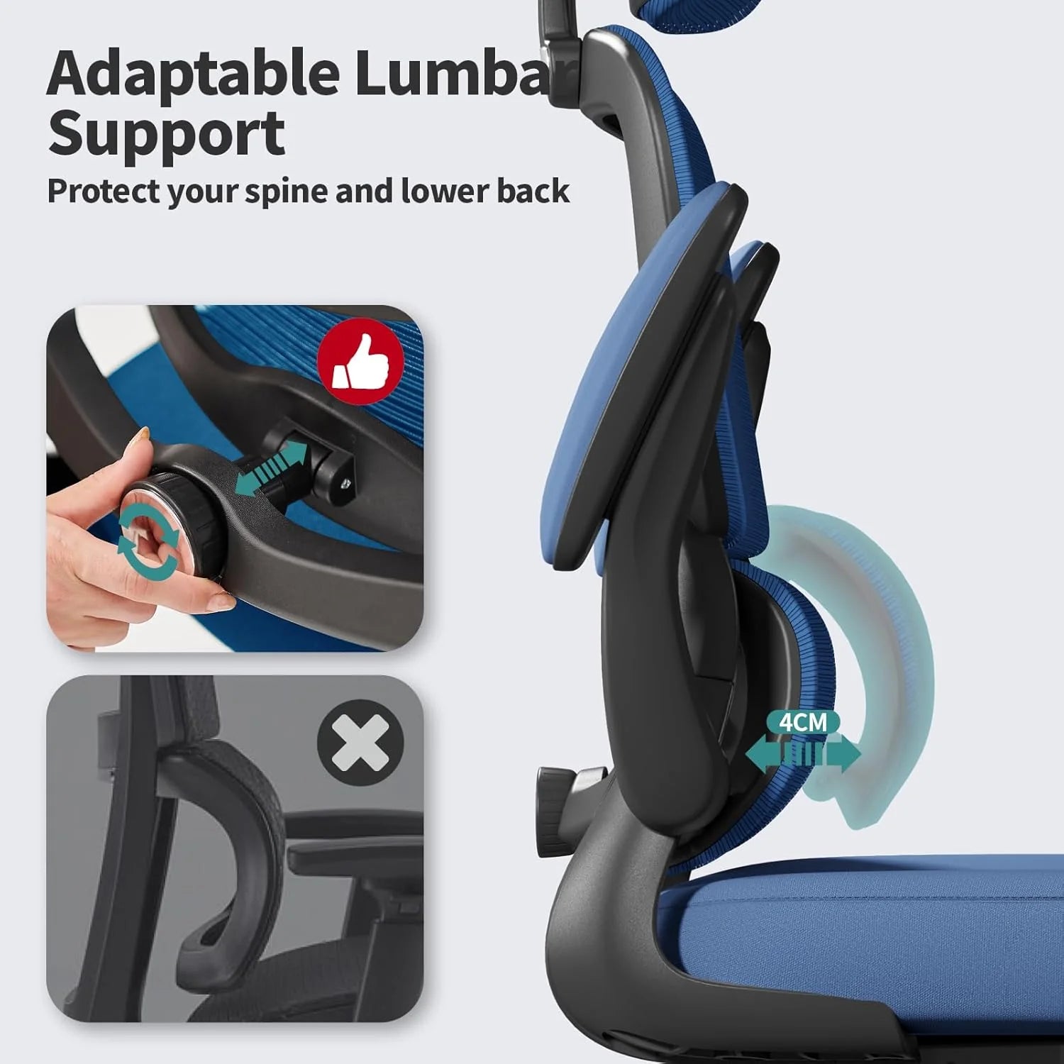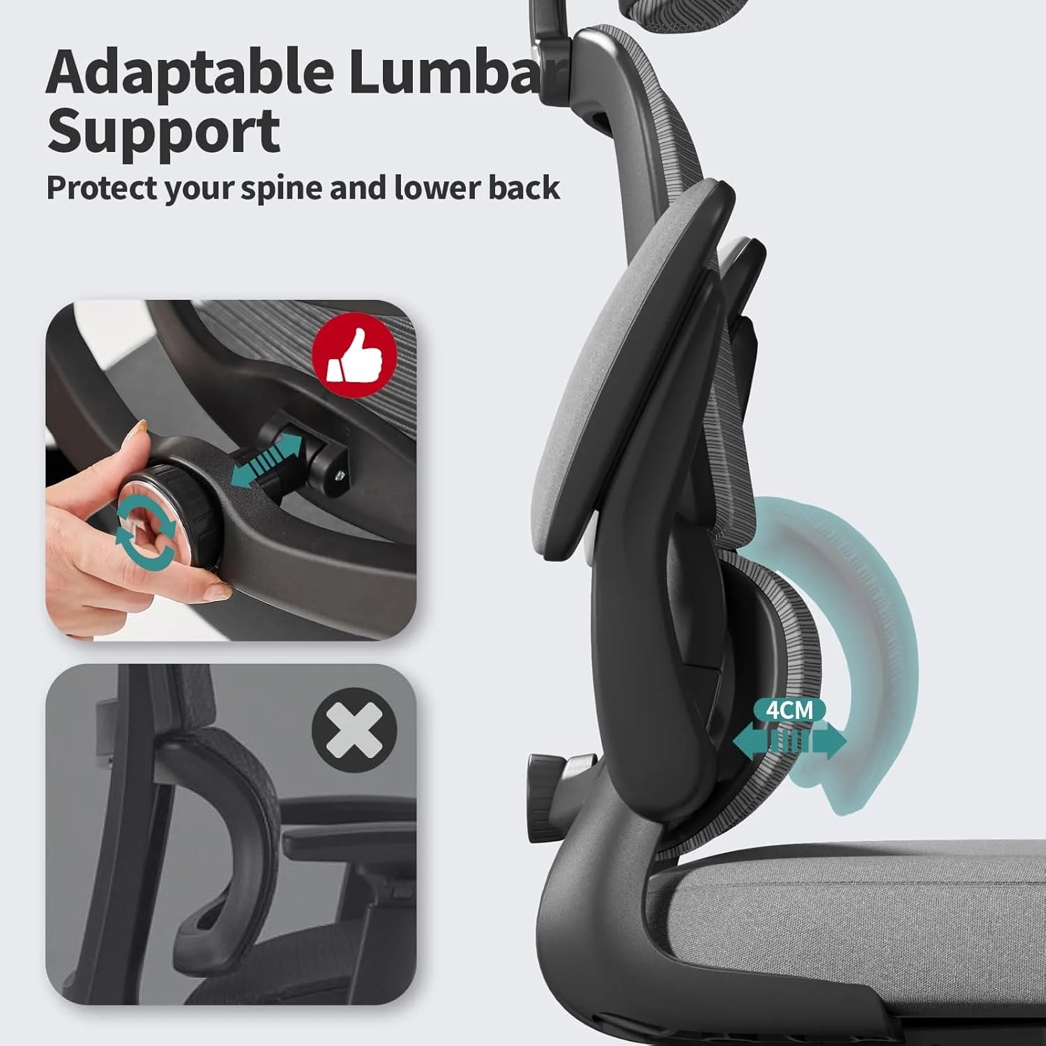 - Ergonomic Office Chair: Experience unparalleled support with our ergonomic office chair, designed to provide comprehensive assistance for your head, back, hips, and arms. Tailored lumbar support ensures your comfort and well-being. Suitable for people of about 5'5" to 6'2". Easily adjust seat height, headrest, backrest, and flip-up arms to cater to diverse needs, offering comfortable support during extended periods of sitting