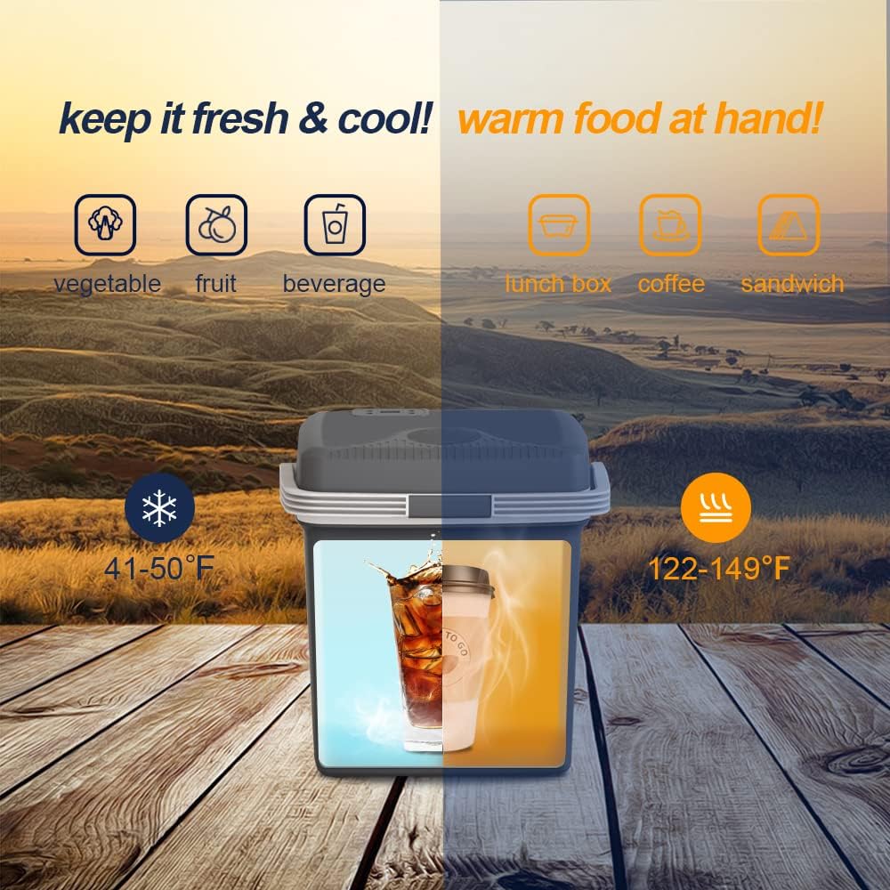 - 【Electric Cooler and Warmer】 Our Portable Car Fridge is both an electric cooler and a heater. Whether you are traveling on the road or camping in an RV, whether it’s in summer or winter, our plug in coolers for vehicles is one of your choices. The electric car cooler cooling down 12-15°C below ambient temperature. Warms up to 55-60°C by the heater. (The rest time between cool/warm switching function need 30 mins) Even while on the road or camping, it is possible to keep food and drinks cool and fresh.