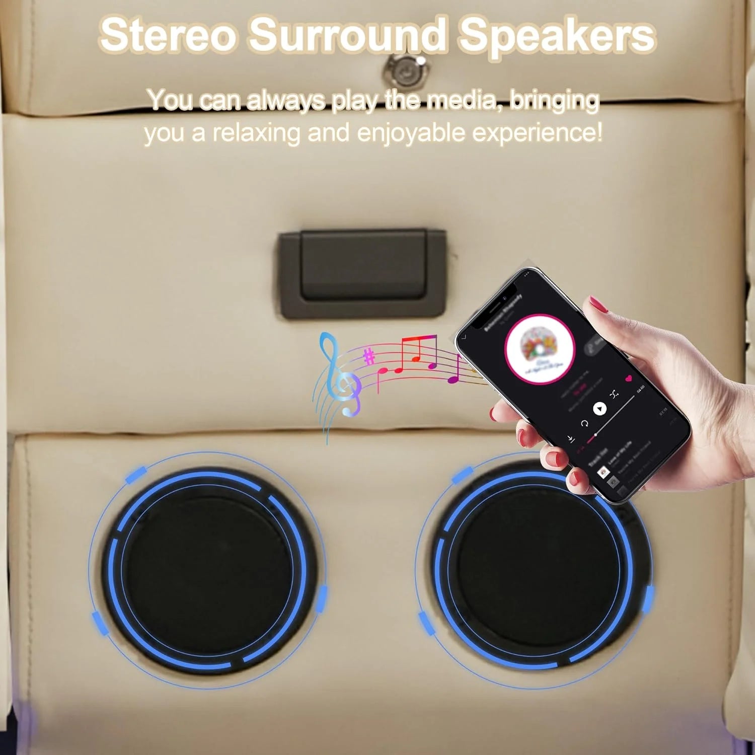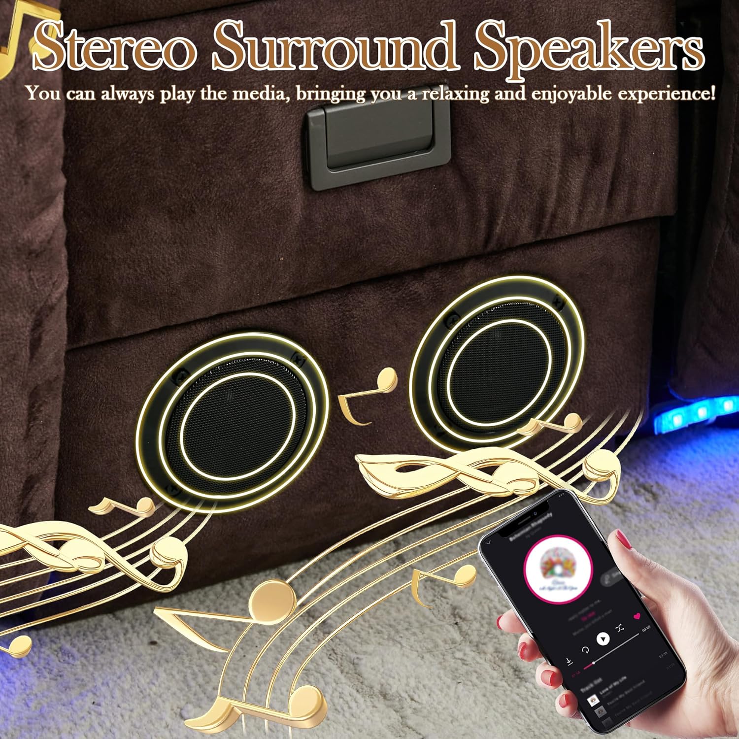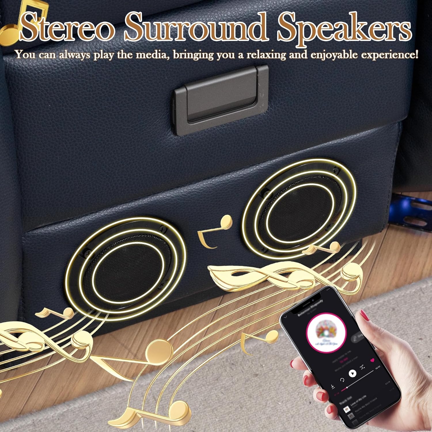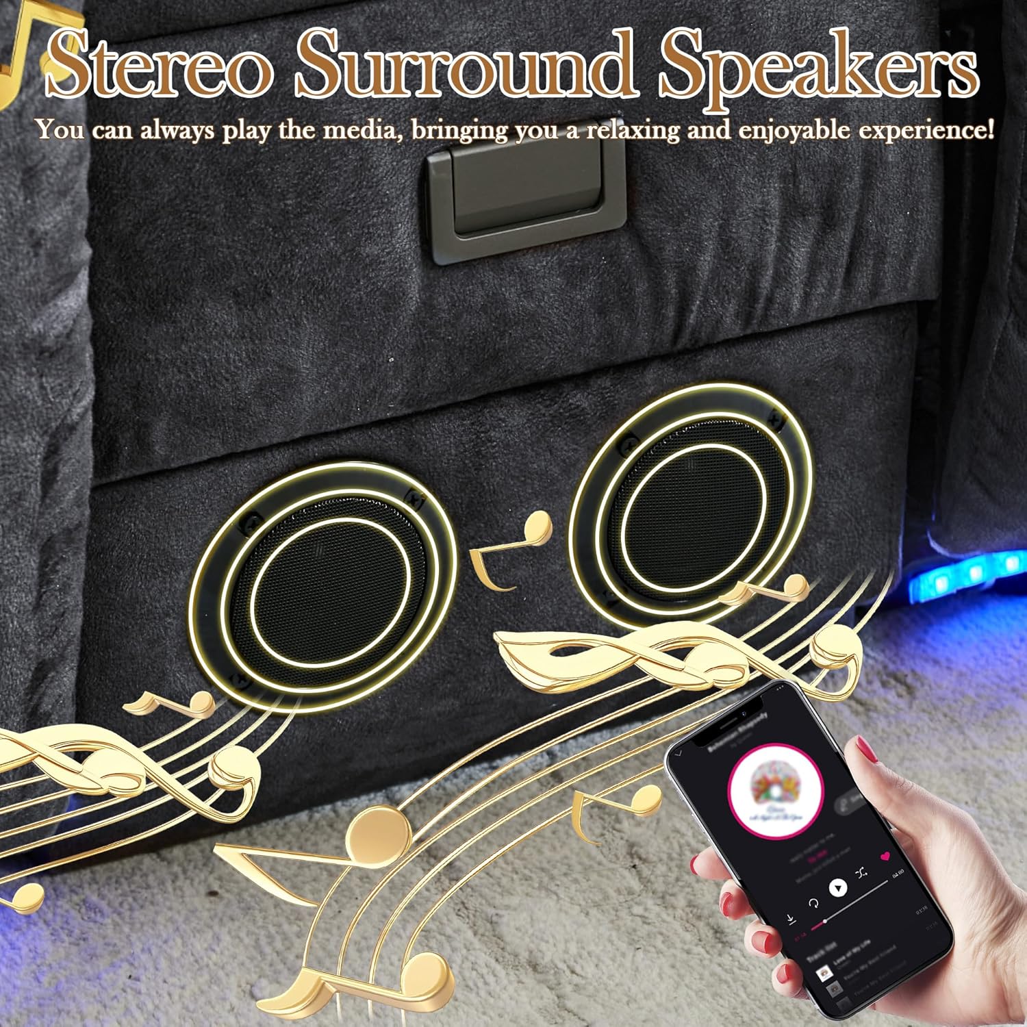 - Smart Storage & Built-in Speakers: The multi-functional center console of this movie loveseat recliner includes a pull-out drawer tray for storing remotes/snacks and dual stereo speakers for immersive audio while you unwind
