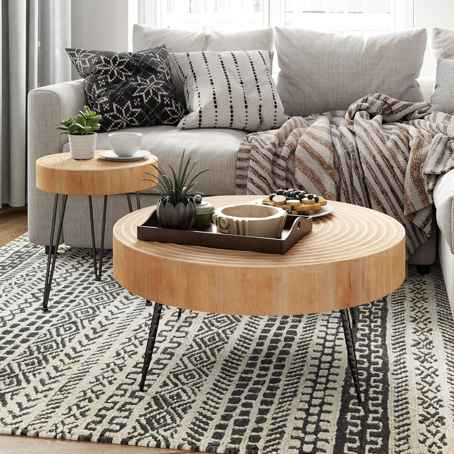 - ✅Add warmth and classic rustic charm to your bedroom or living room with this distressed cylindrical table set. All pieces make matching colors easy with their neutral and natural wood finish while natural wood grain and knot variations may apply.