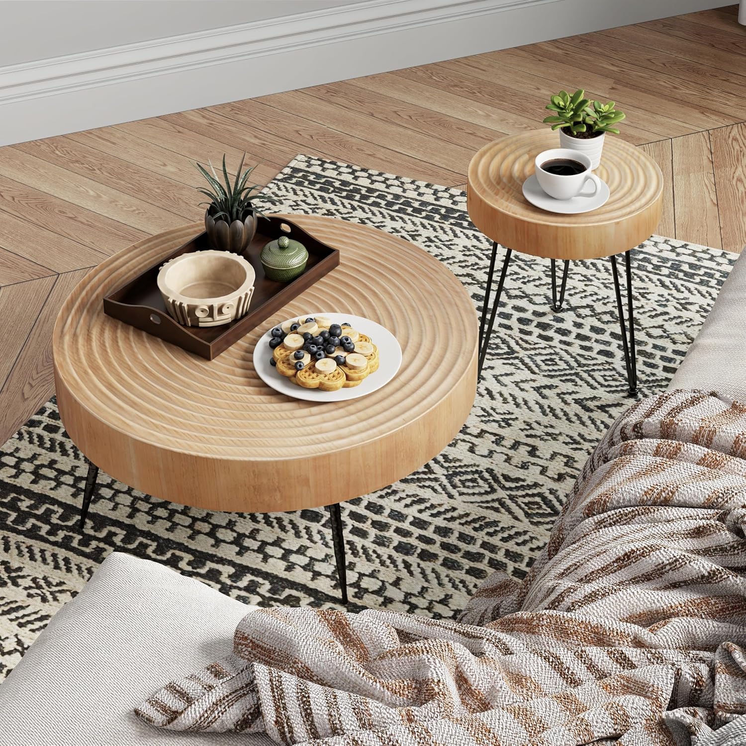 Two-Piece Modern Farmhouse Living Room Coffee Table Set, Round Nesting Tables