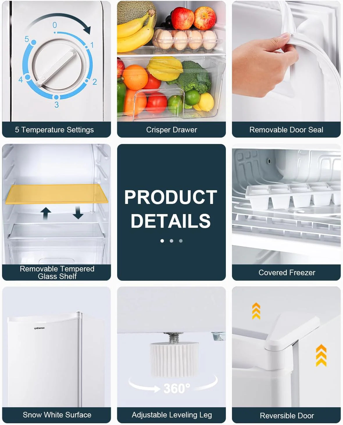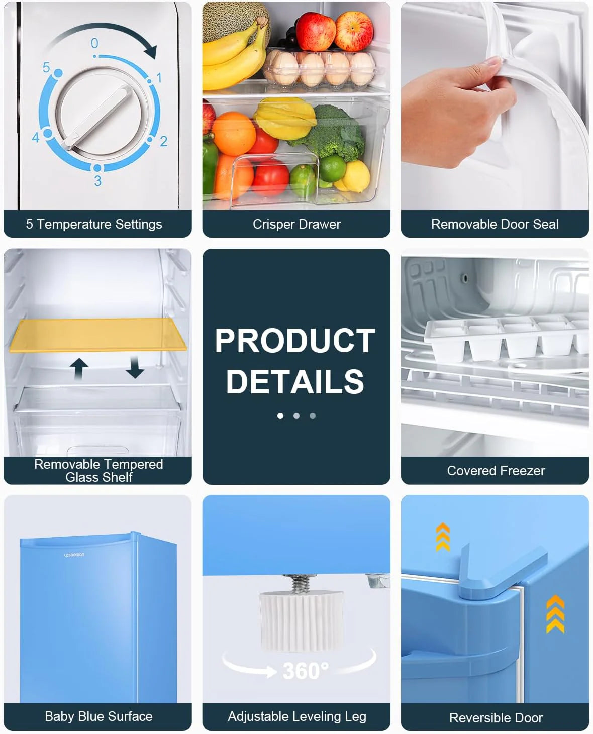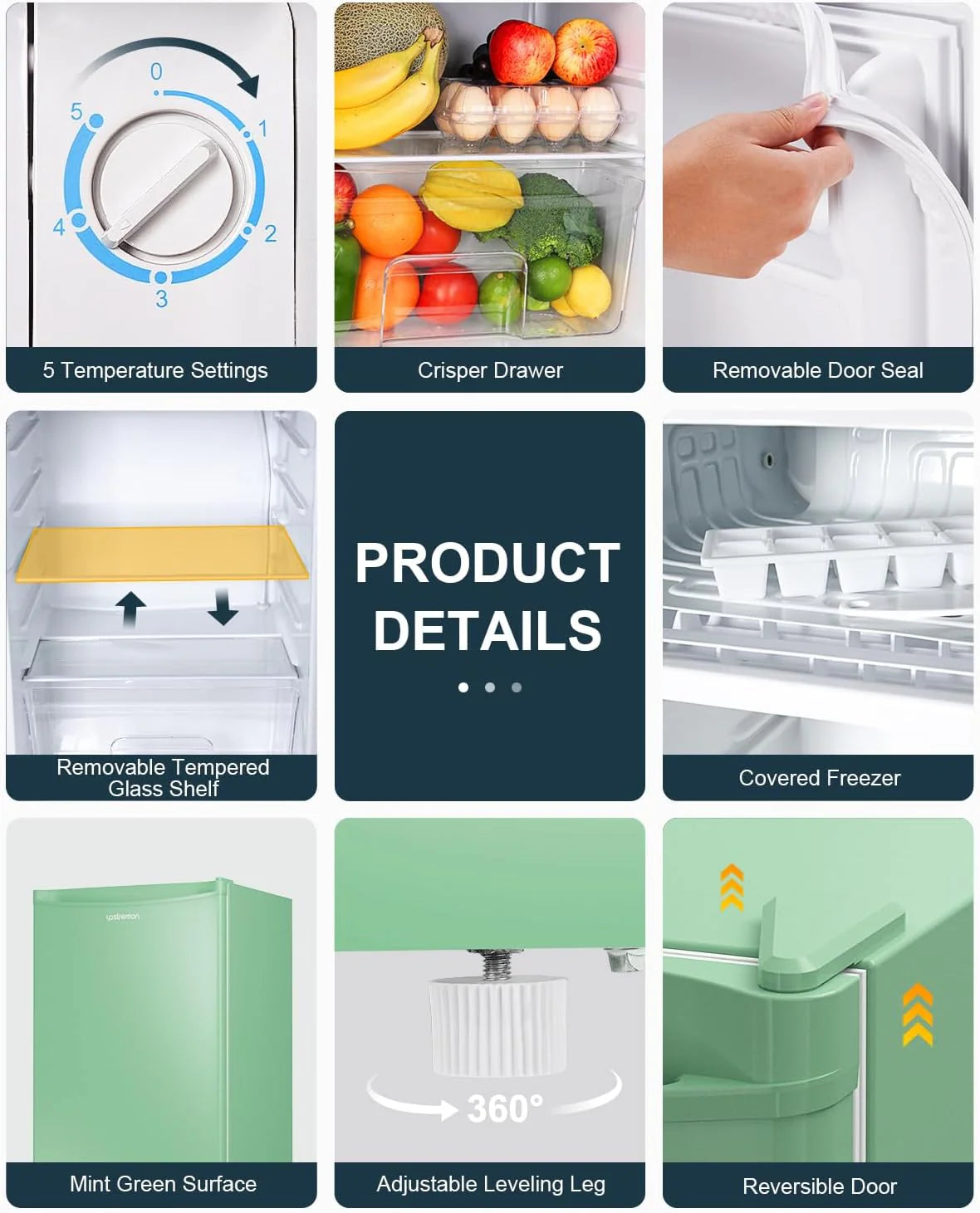 - Crisper Drawer & Removable Shelves: Features a crisper drawer to keep your greens and fruits fresh and juicy. The small fridge storage space is adjustable to practical uses with removable shelves. Arrange these shelves how you see fit and you’d be amazed how much the small fridge can stores