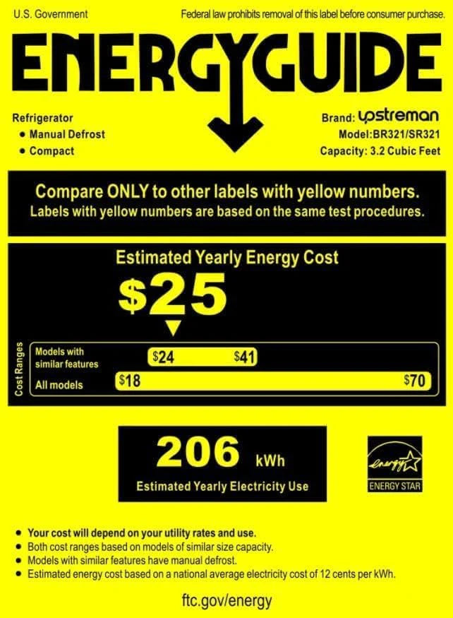 Upstreman 3.2 Cu.Ft Mini Fridge with Freezer, Single Door Mini Fridge, Dorm Fridge, Adjustable Thermostat, Mini Refrigerator for Bedroom, Office, Dorm, Black-BR321