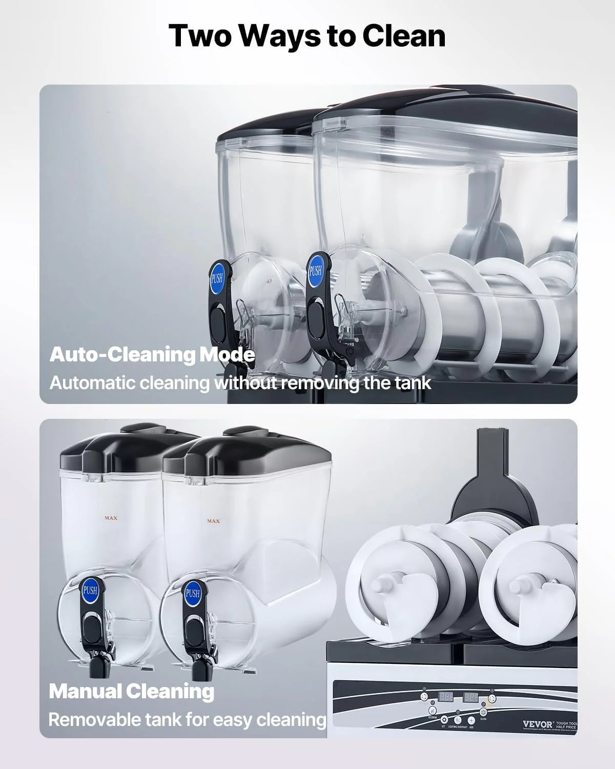 - Durable & Easy to Clean: Made with a stainless steel body and food-grade PC tank, this commercial slushie machine is built to last and easy to clean. The tank features one-button automatic cleaning, and the modular components can be easily disassembled without tools for hassle-free maintenance and cleaning.