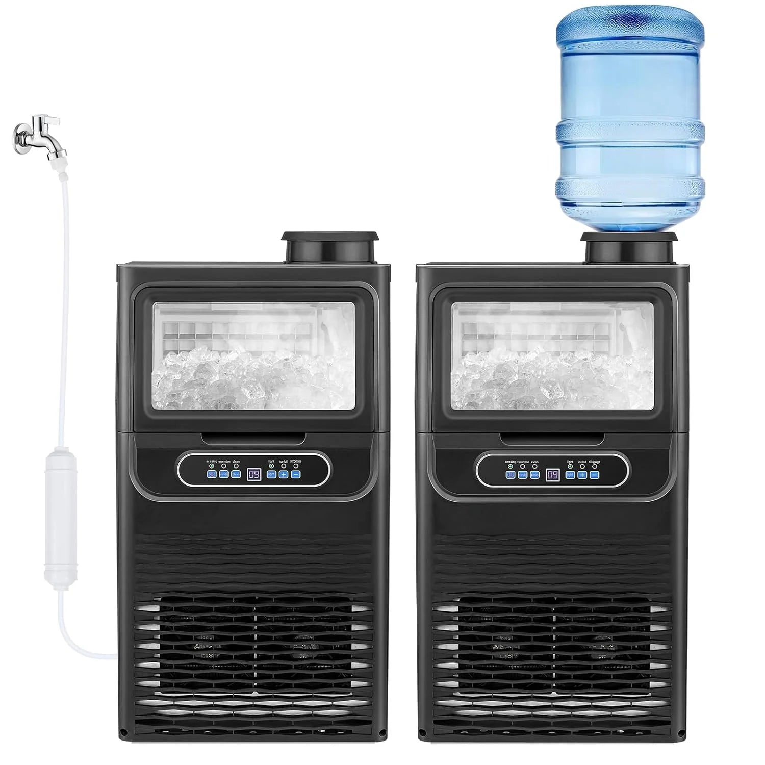 - Dual water supply options: Commercial freestanding ice maker offers two water supply methods.It can be connected to filtered tap water or use bottled water. According to your needs, you can choose the appropriate water inlet method.The installation process is simple,allowing you to enjoy a convenient ice-making experience.
