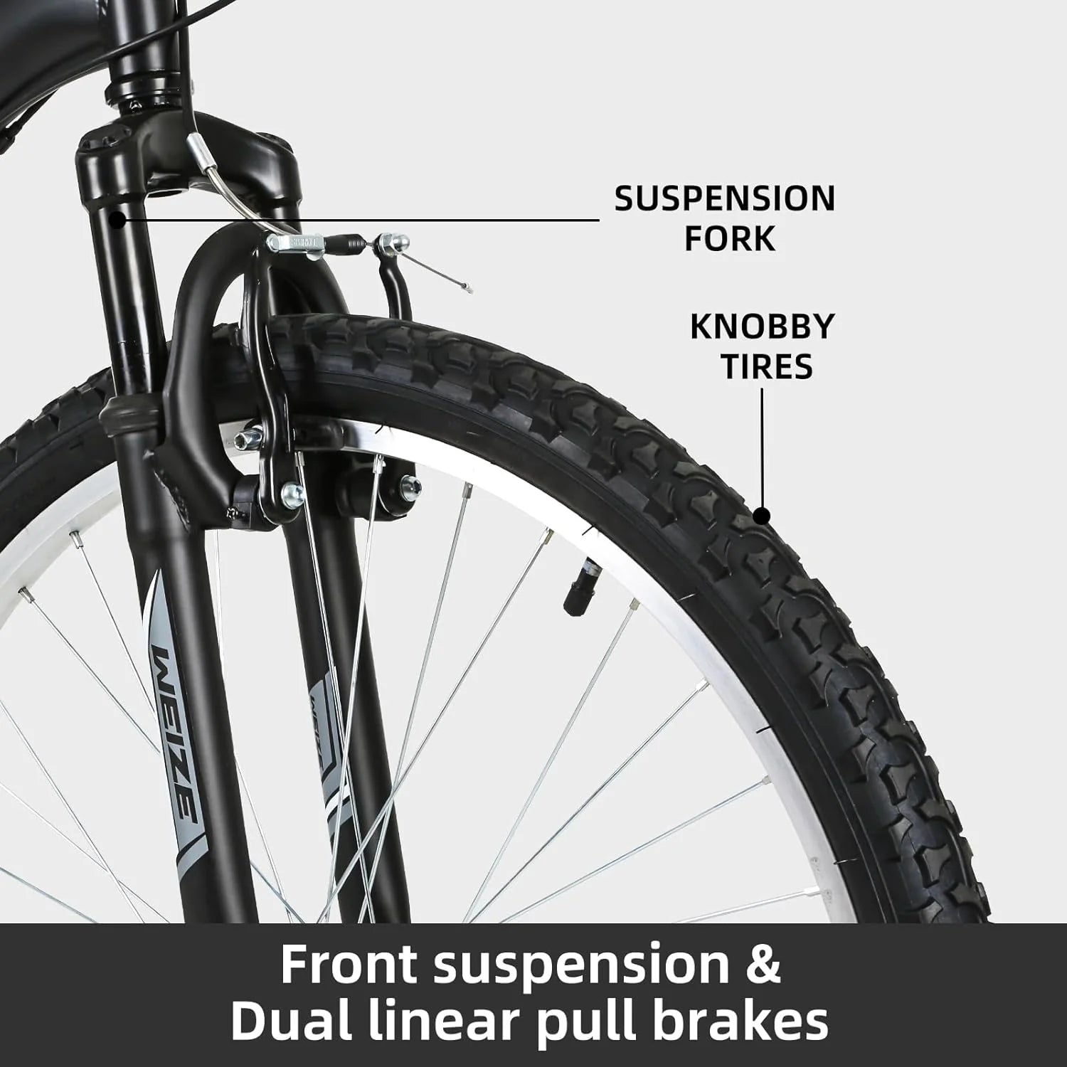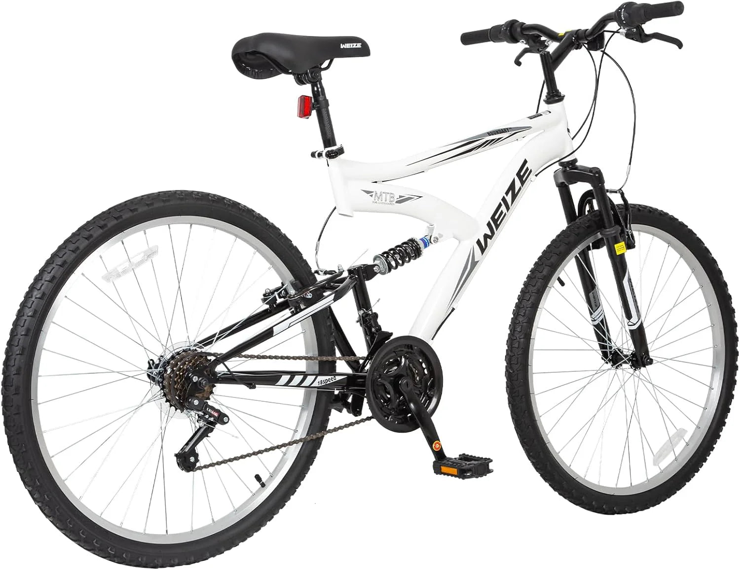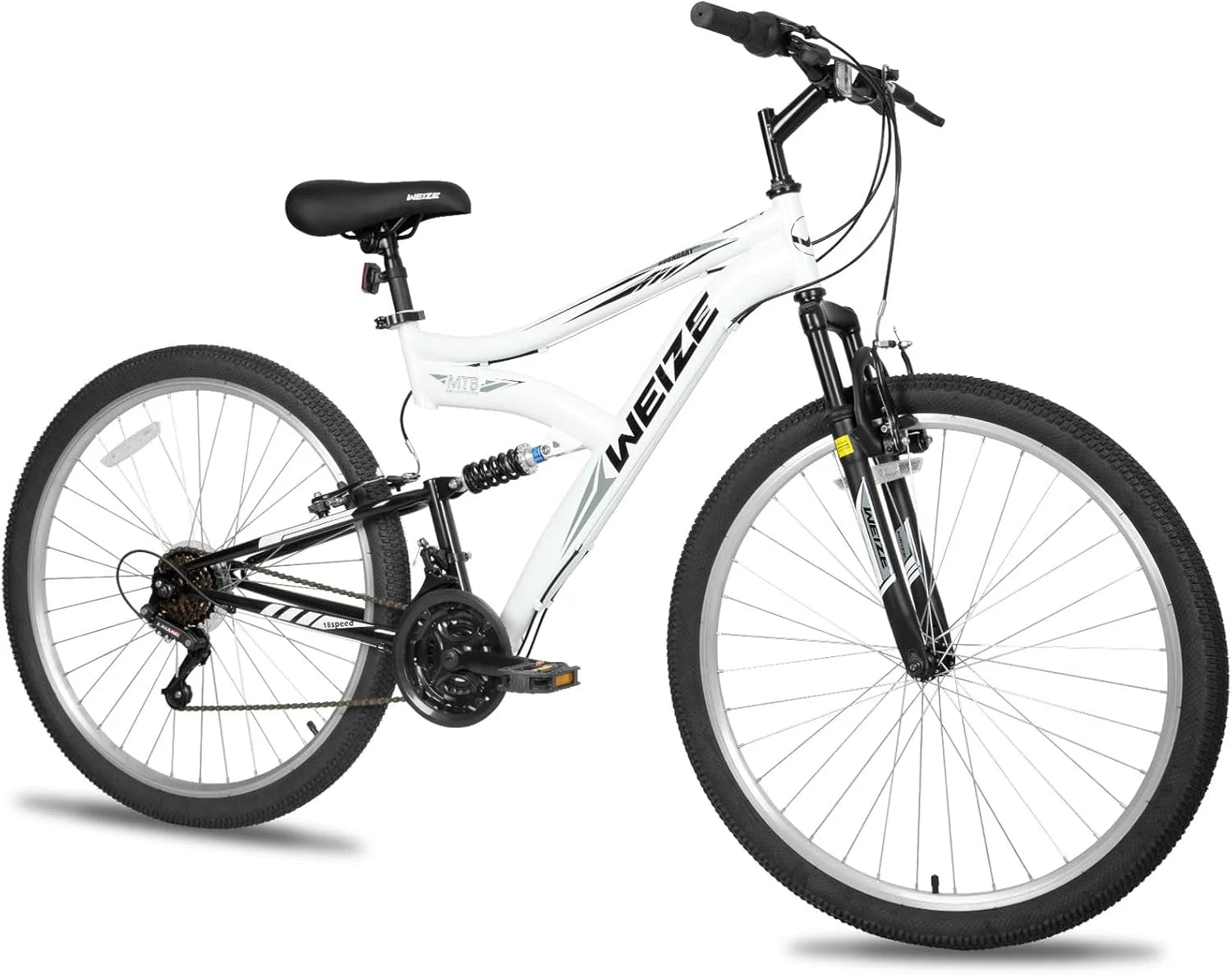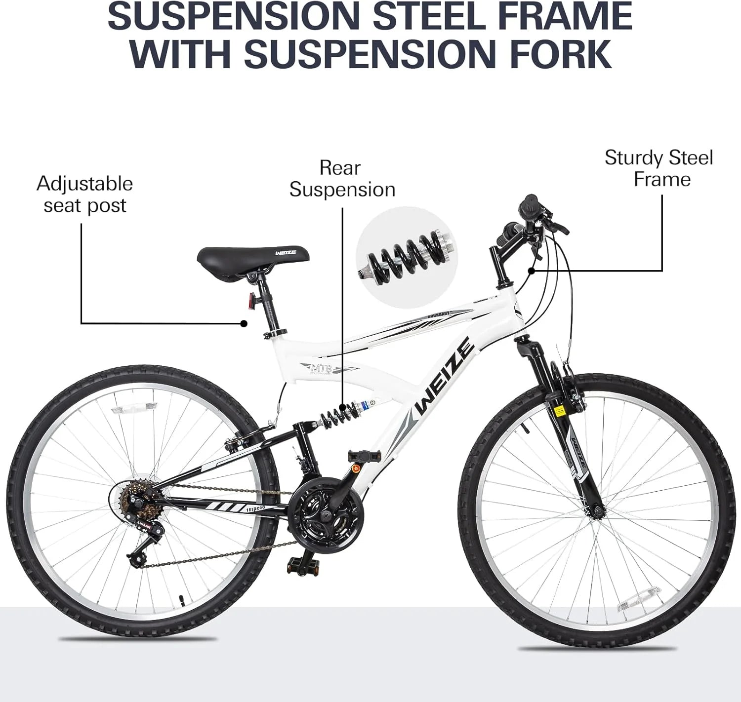 WEIZE Mountain Bike, 26 27.5 inch Outdoor Hybrid Bikes,18-Speed/High-Carbon Steel/Dual Full Suspension, Adjustable Ergonomic Seat for Men Women Adult, MTB Bicycle with Suspension Fork,Sleek Colors