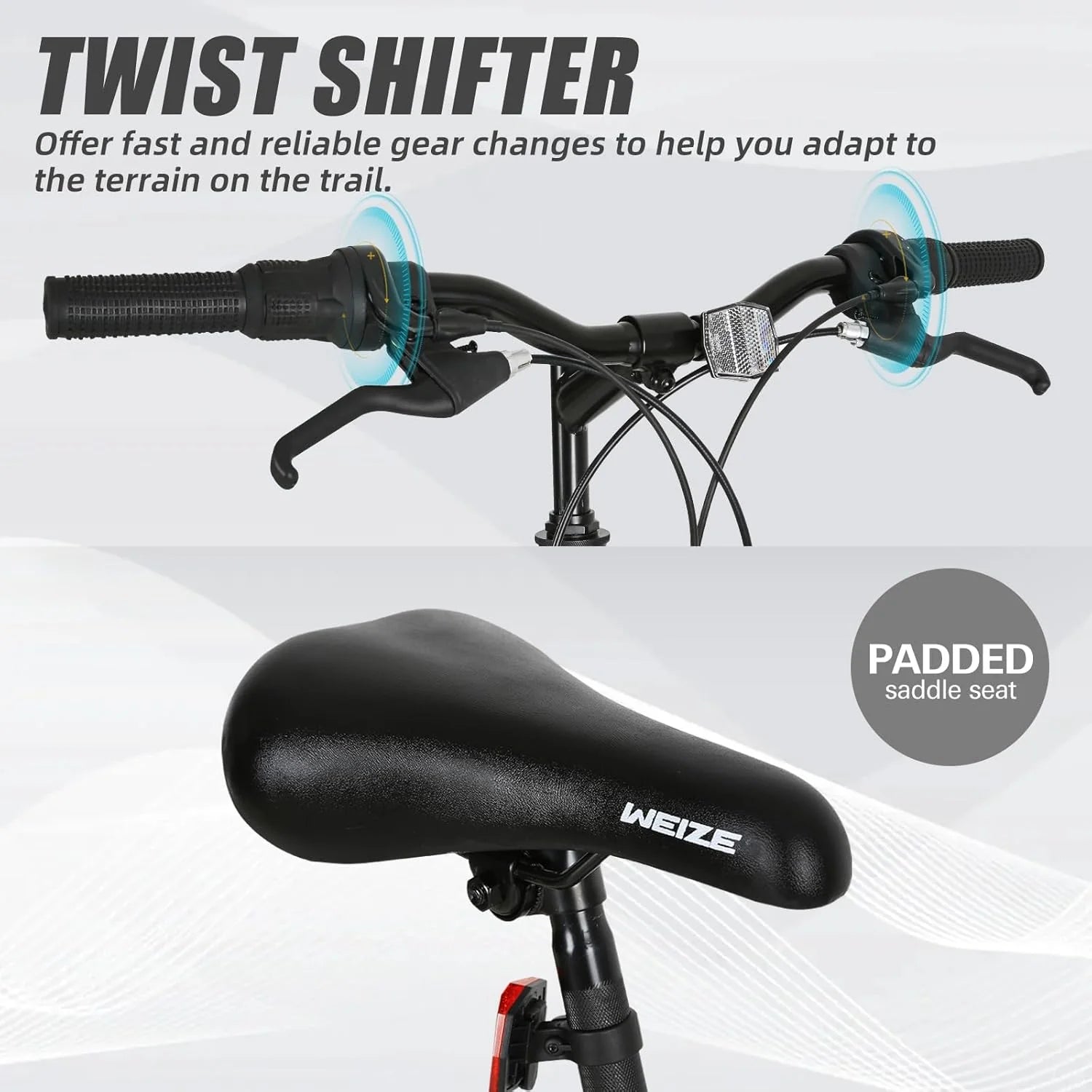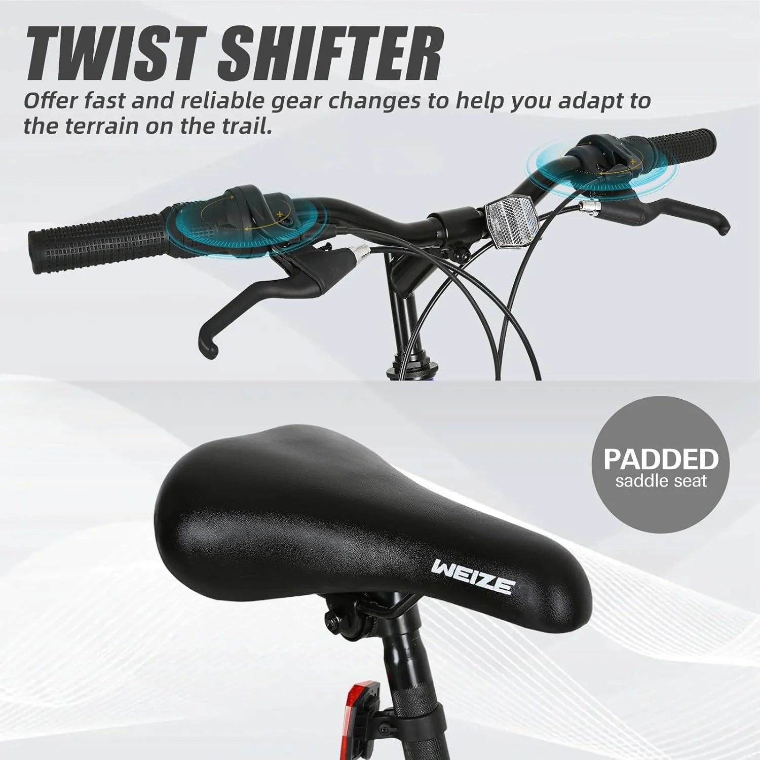 - 【Speeds】: Effortless gear change with 18-speed twist shifters and front and rear derailleurs.Help you find the perfect cadence to navigate your path ahead.