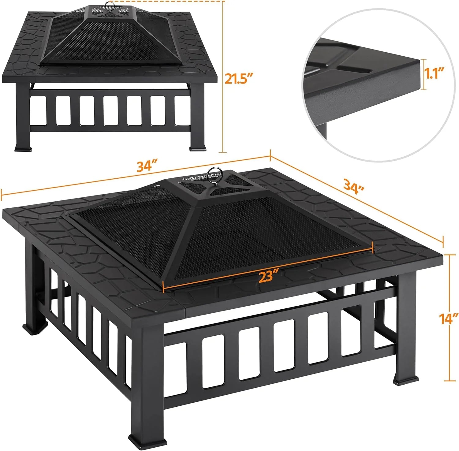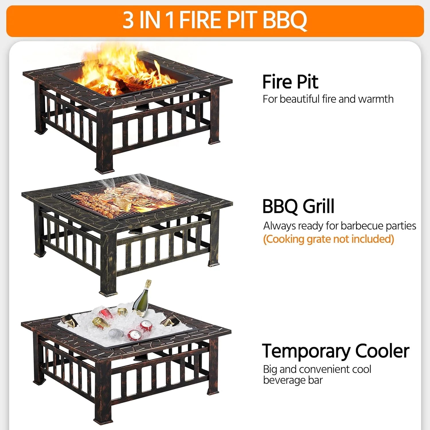 - Joy All Year Round: This outdoor fire pit introduces cozy warmth, ample light and a captivating atmosphere to your backyard/garden/patio during cold nights. Not only for cool/cold seasons, this square fire pit is also perfect for Spring/Summer barbecue parties