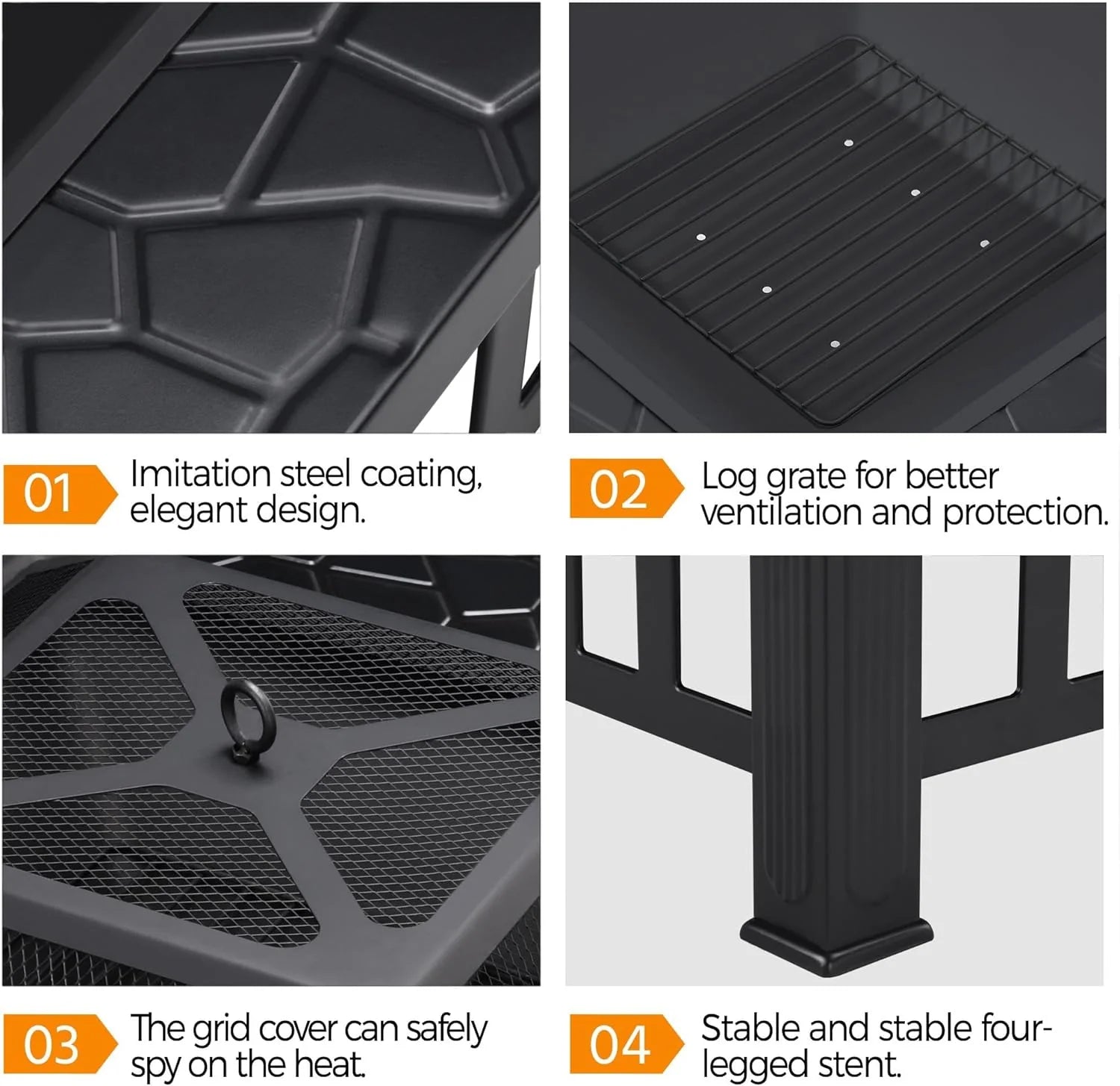 - Heat-resistant Metal Firepit: Constructed from solid metal with a heat-resistant finish, this square fire pit boasts high strength and good durability but is still lightweight. The fire bowl can withstand high temperatures of up to 600 ℃/1112 ℉