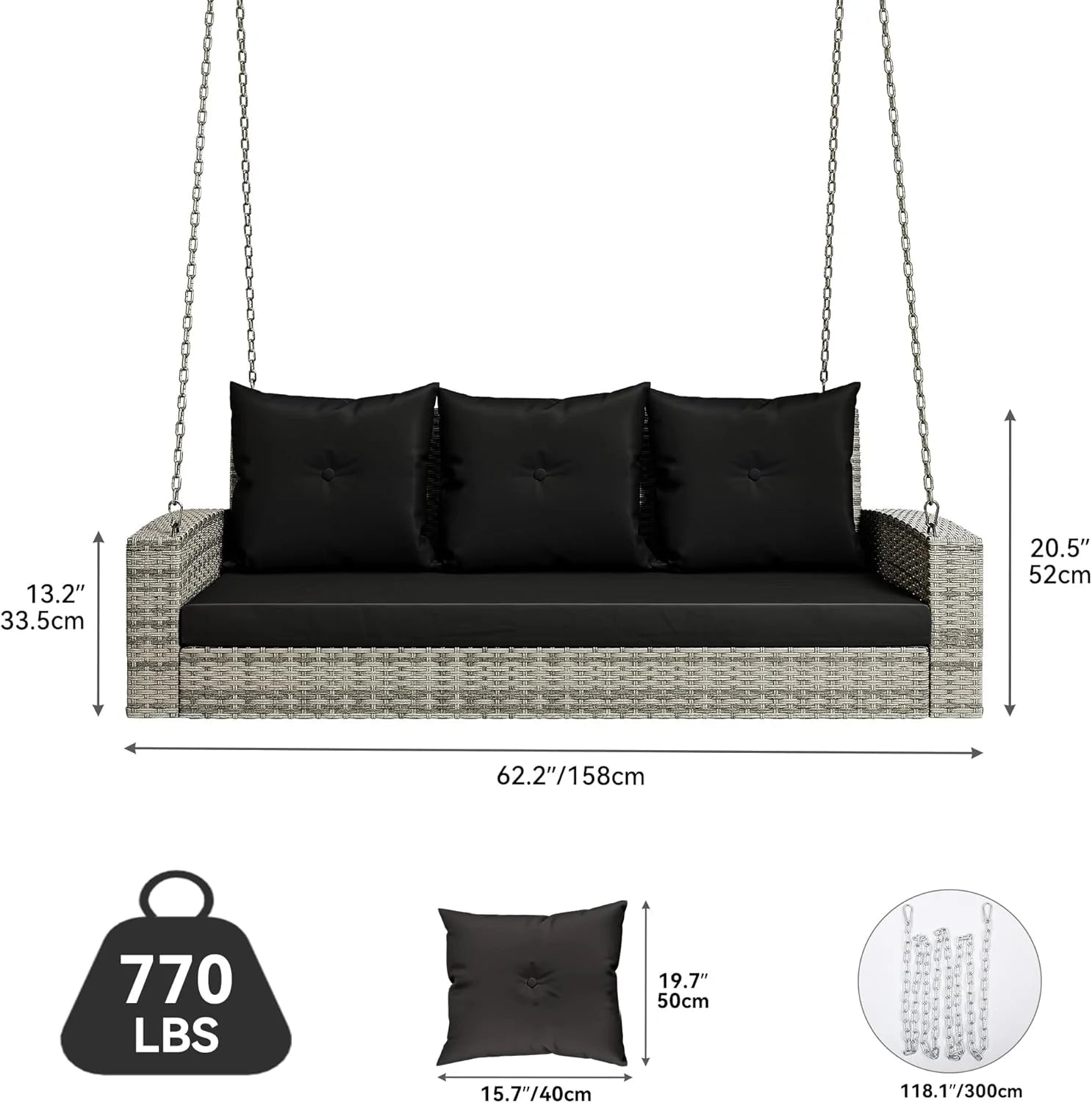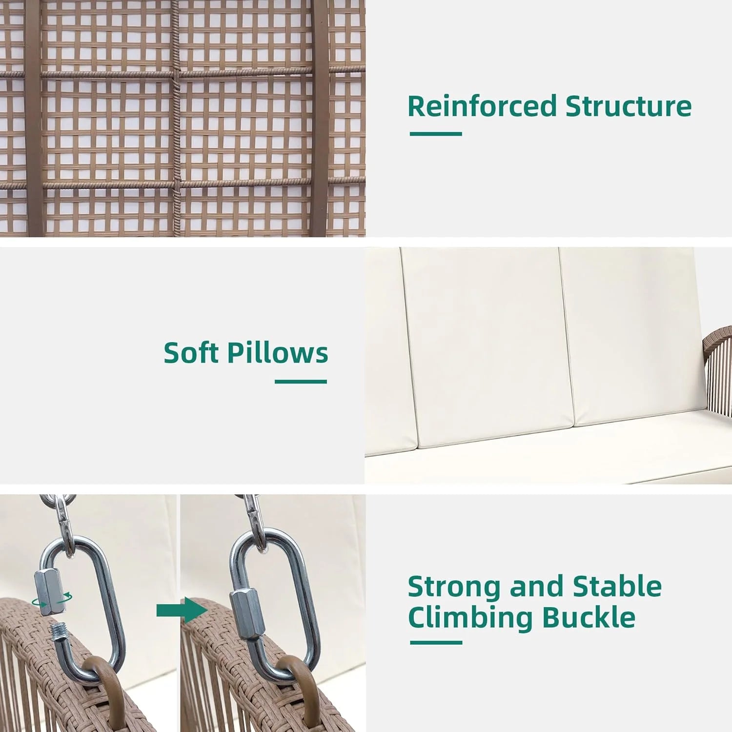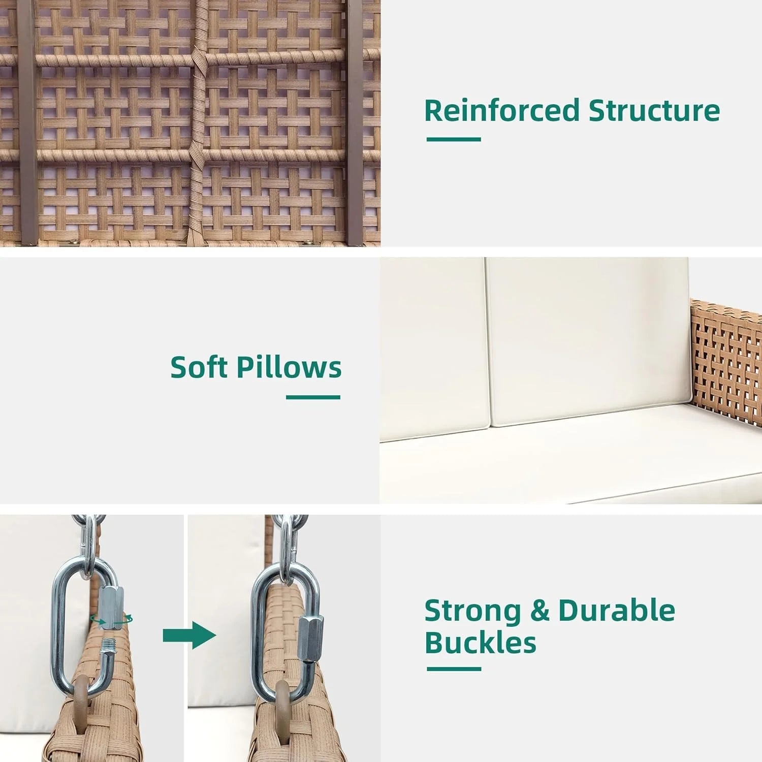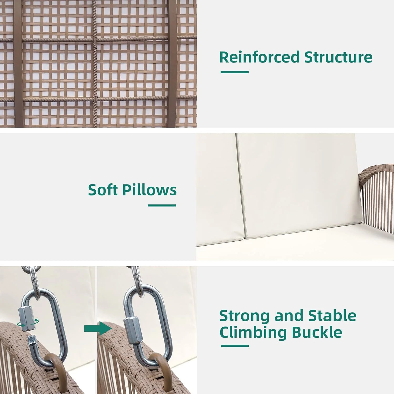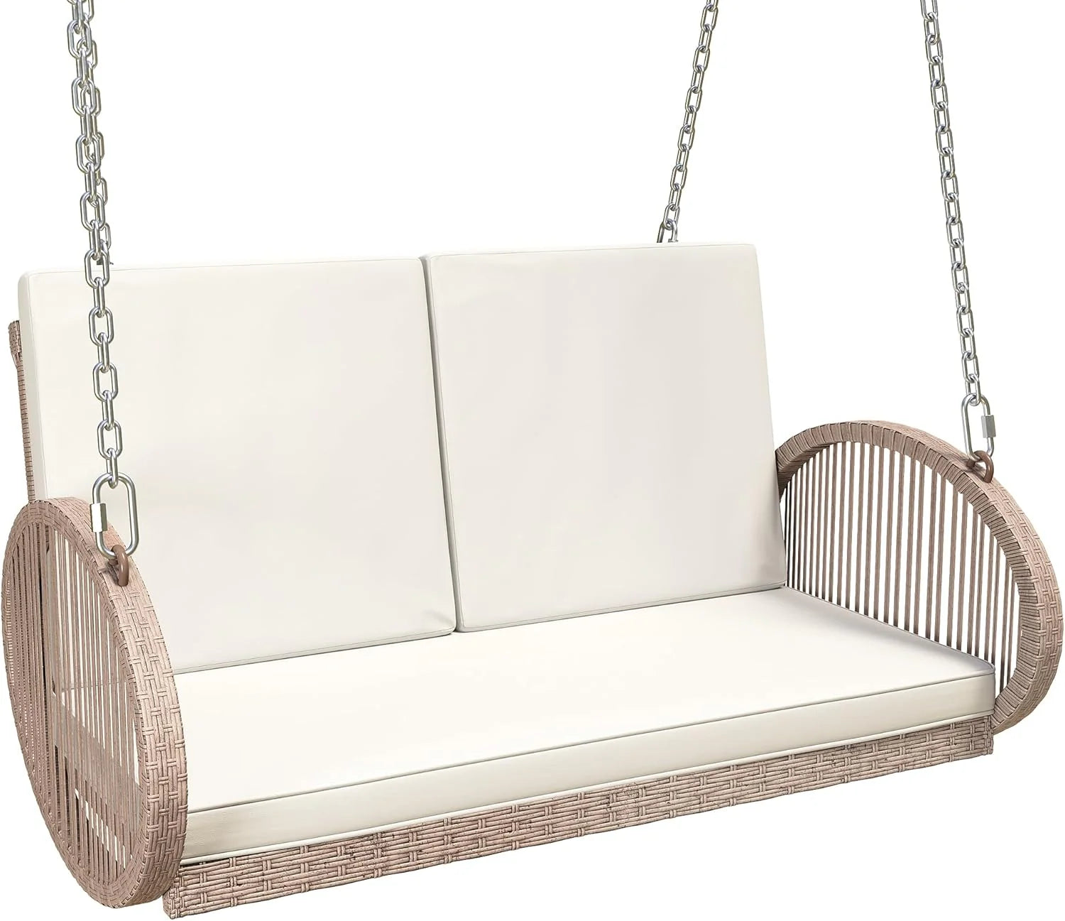 - Weather-Resistant Durability: Crafted from top-tier polyethylene rattan, this swing bench resists fading, cracking, and all weather elements. It can withstand 1,000 hours of direct sunlight, keeping its vibrant appearance year after year, no matter the conditions