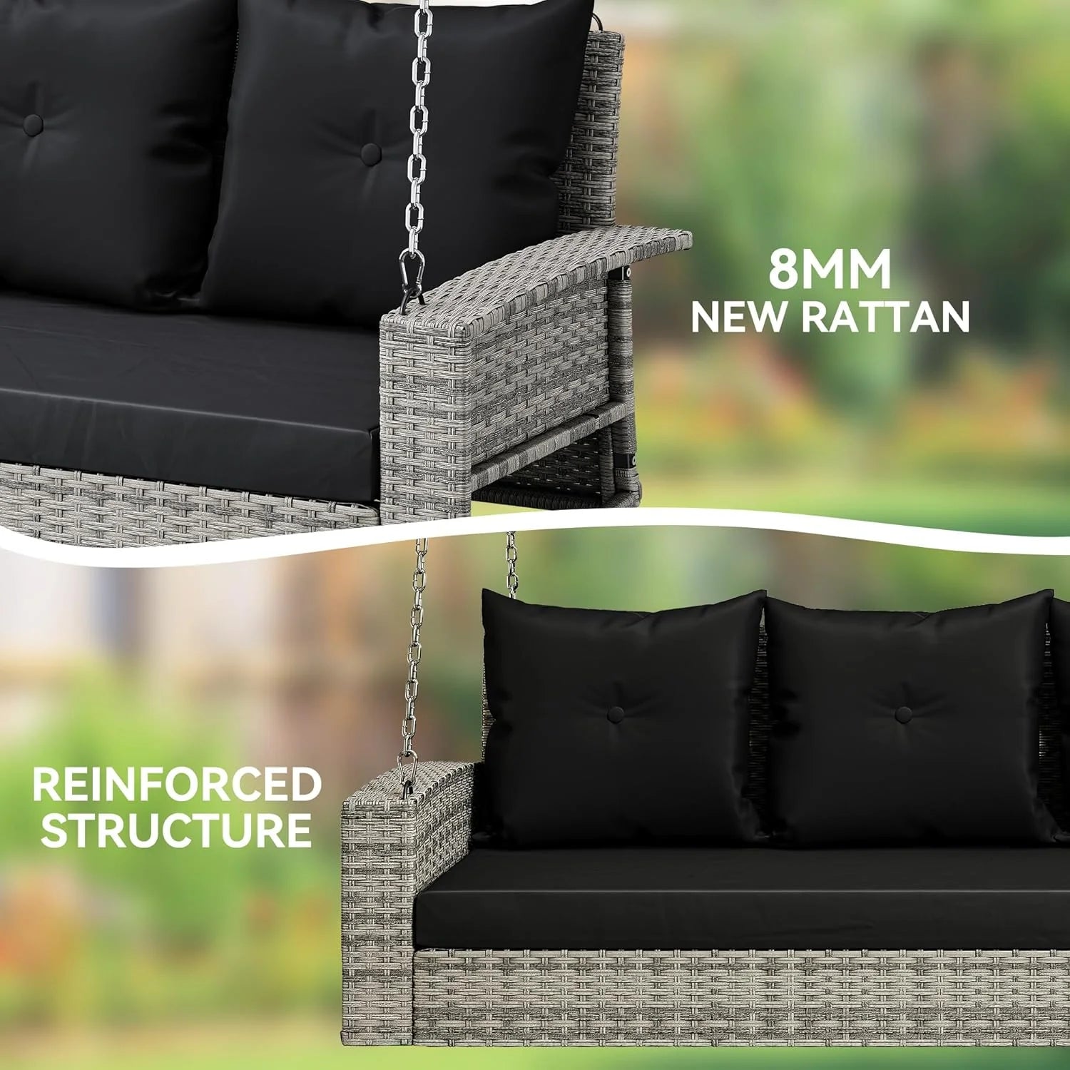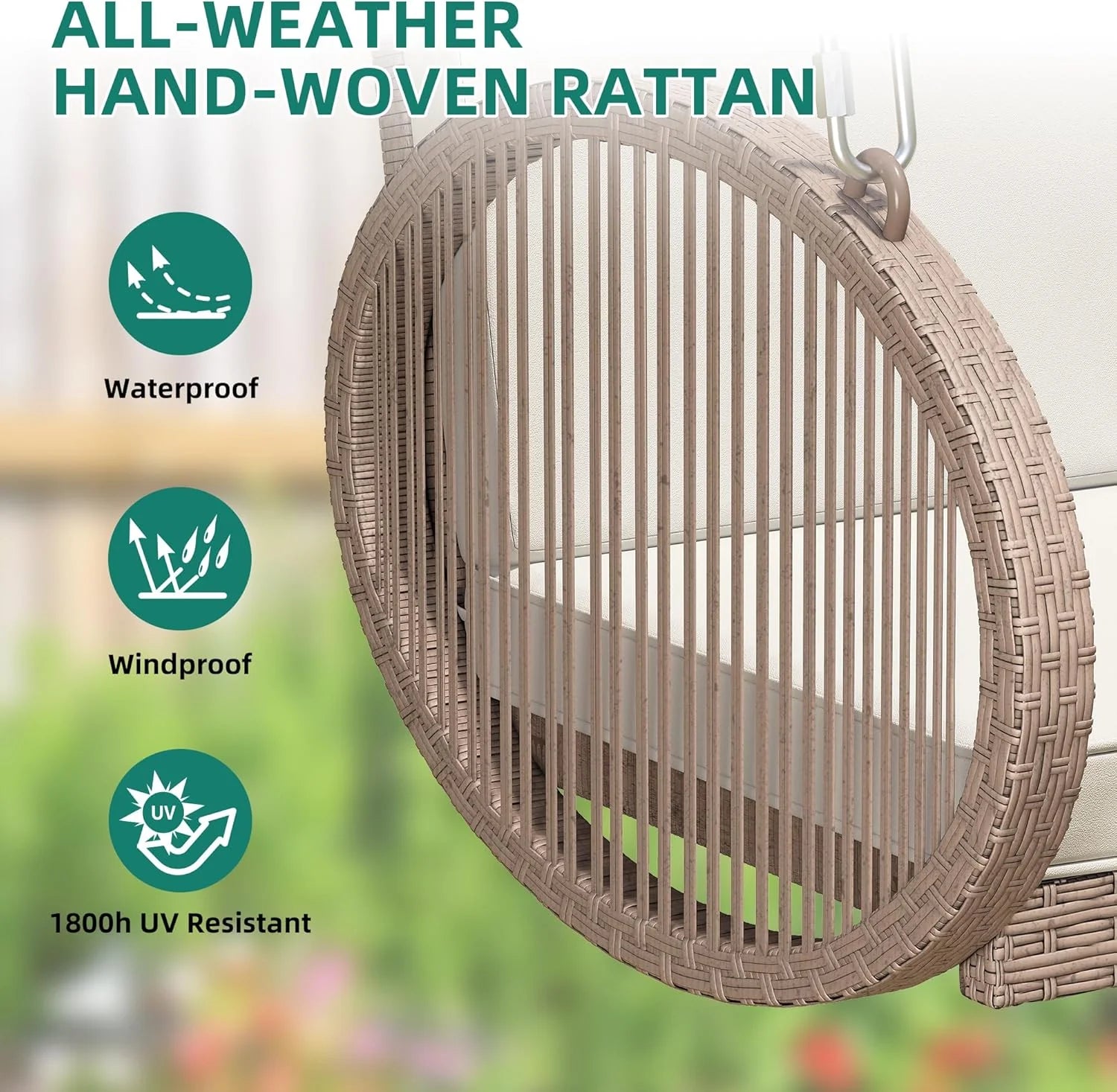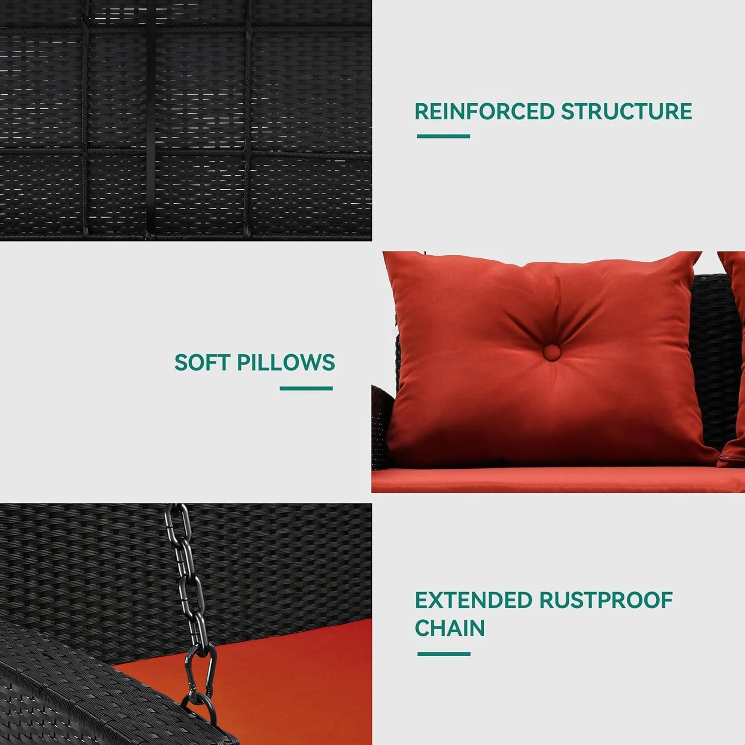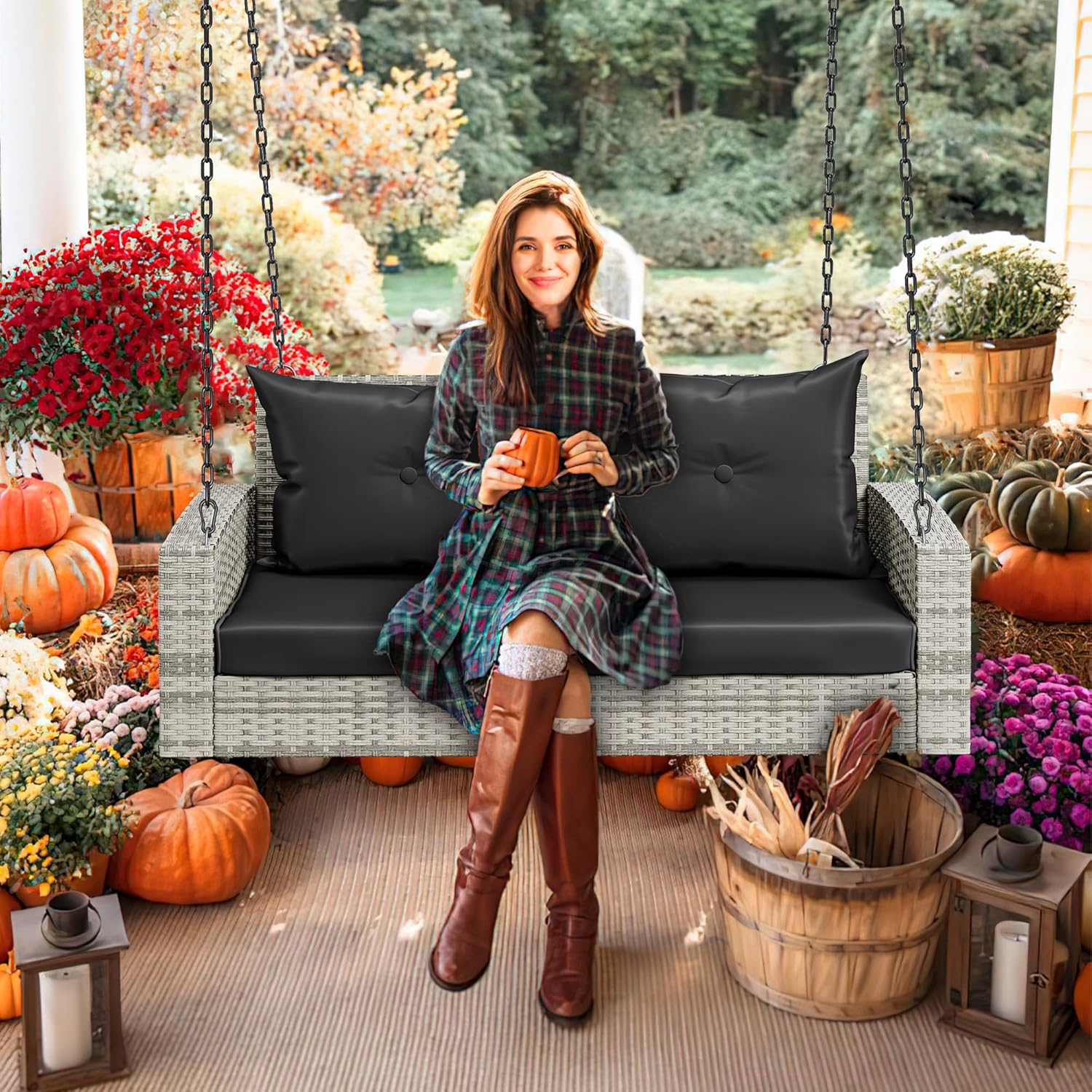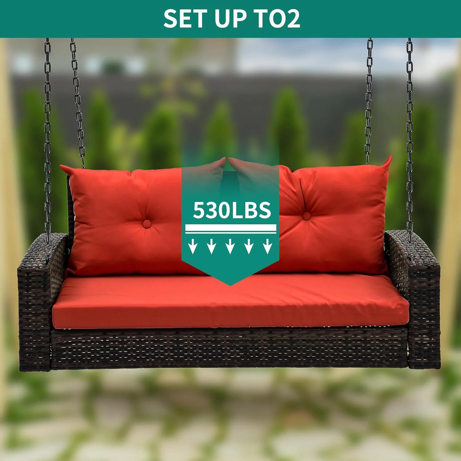 - Weather-Resistant Durability: Crafted from top-tier polyethylene rattan, this swing bench resists fading, cracking, and all weather elements. It can withstand 1,000 hours of direct sunlight, keeping its vibrant appearance year after year, no matter the conditions