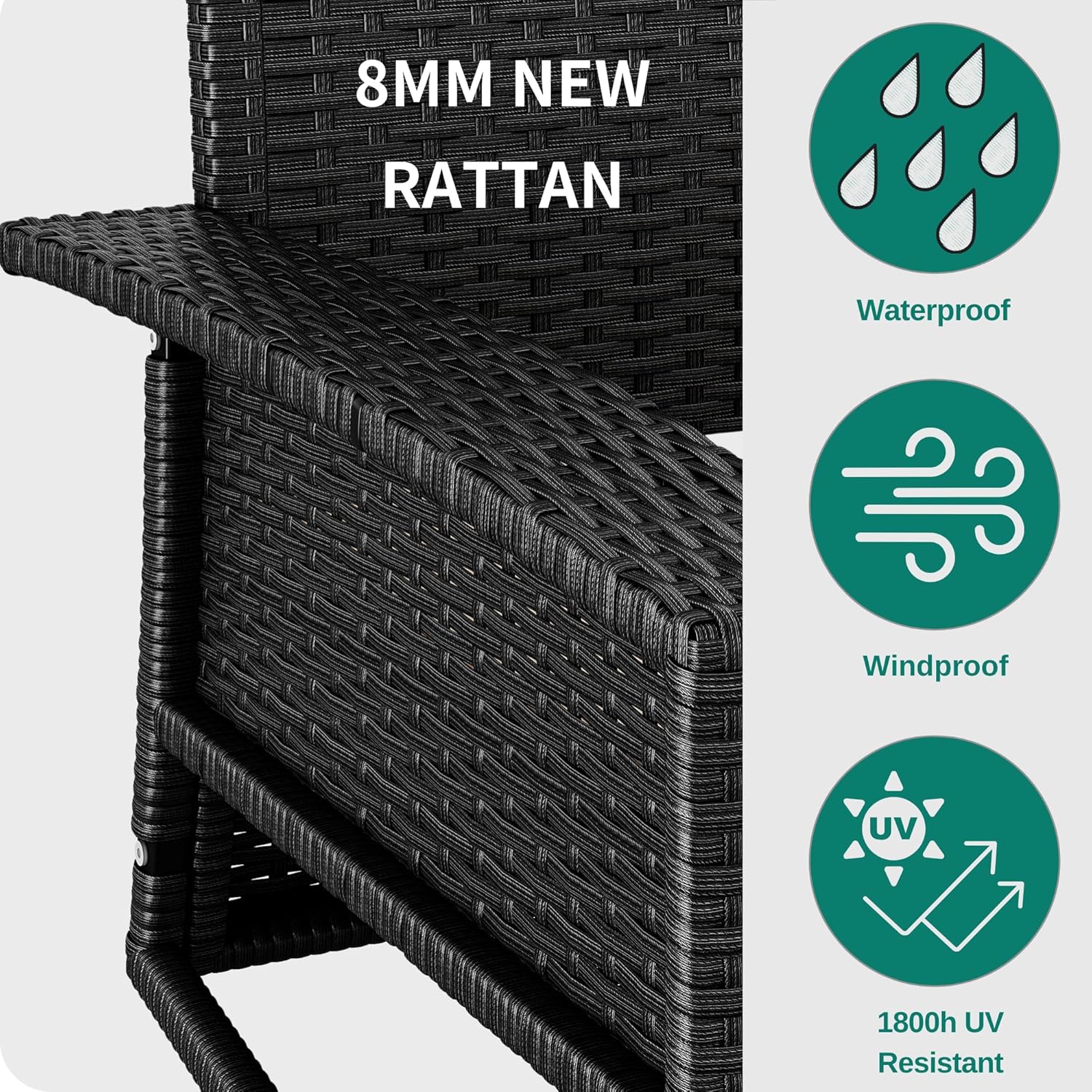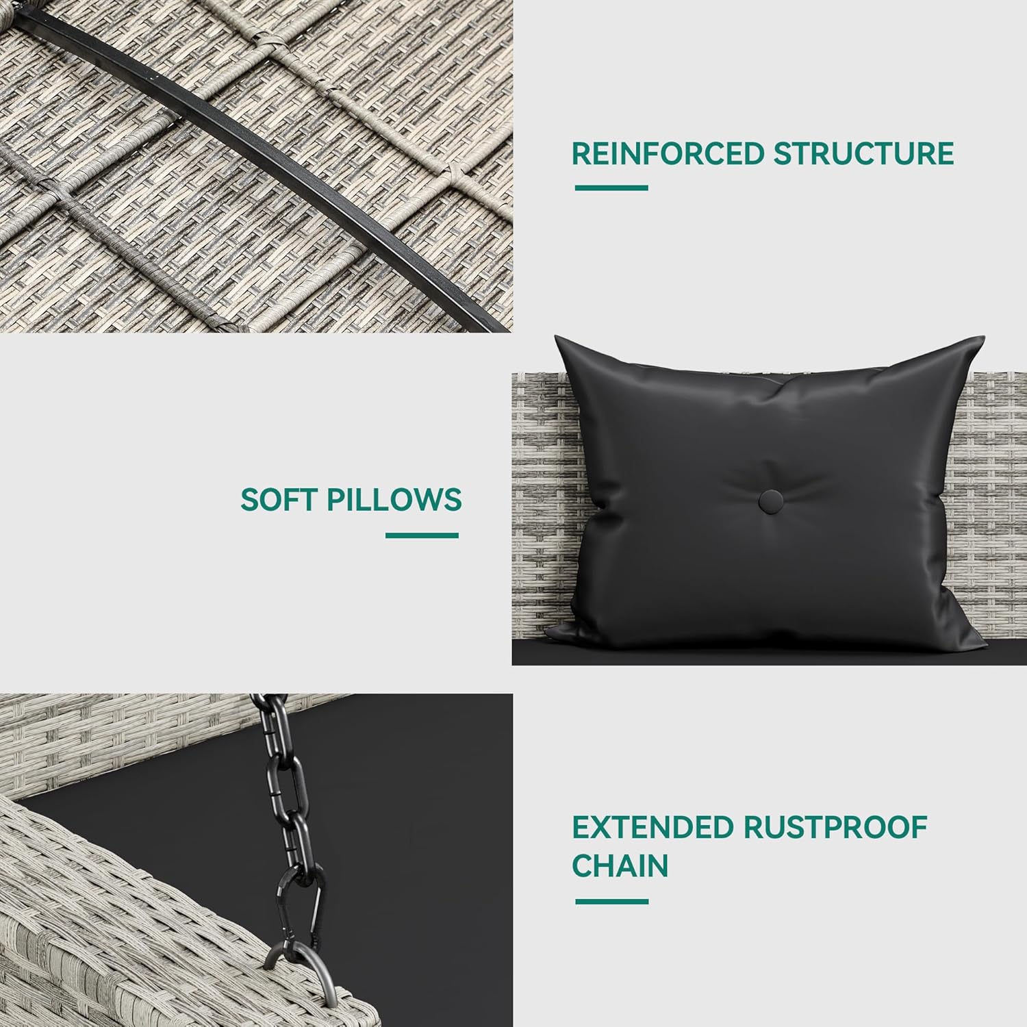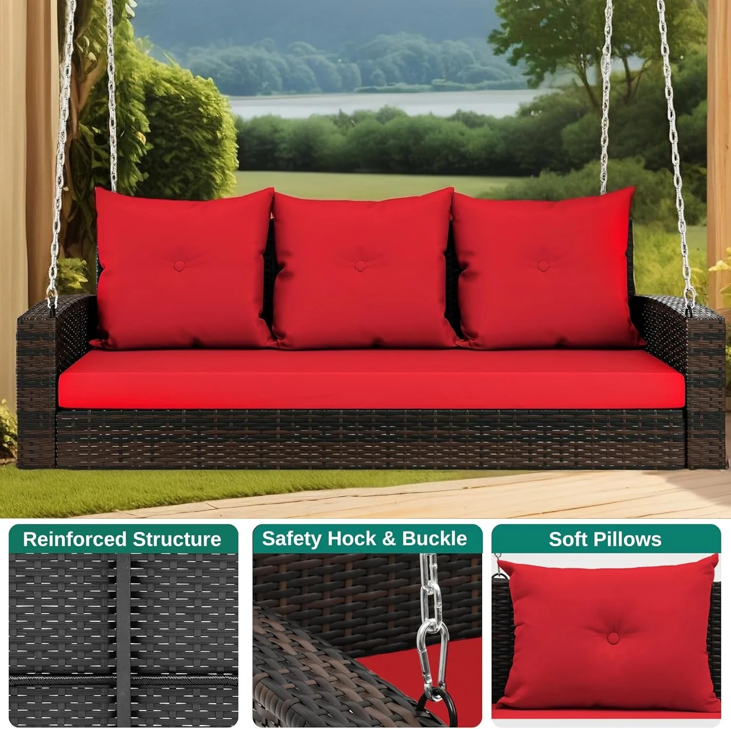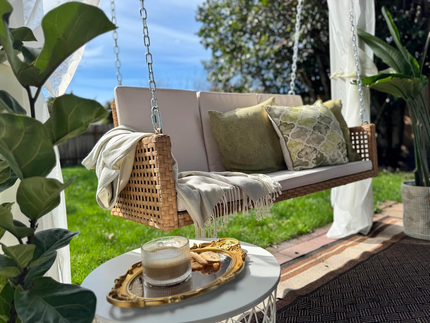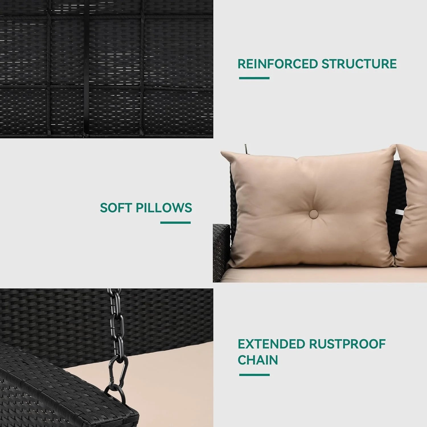 - Weather-Resistant Durability: Crafted from top-tier polyethylene rattan, this swing bench resists fading, cracking, and all weather elements. It can withstand 1,000 hours of direct sunlight, keeping its vibrant appearance year after year, no matter the conditions