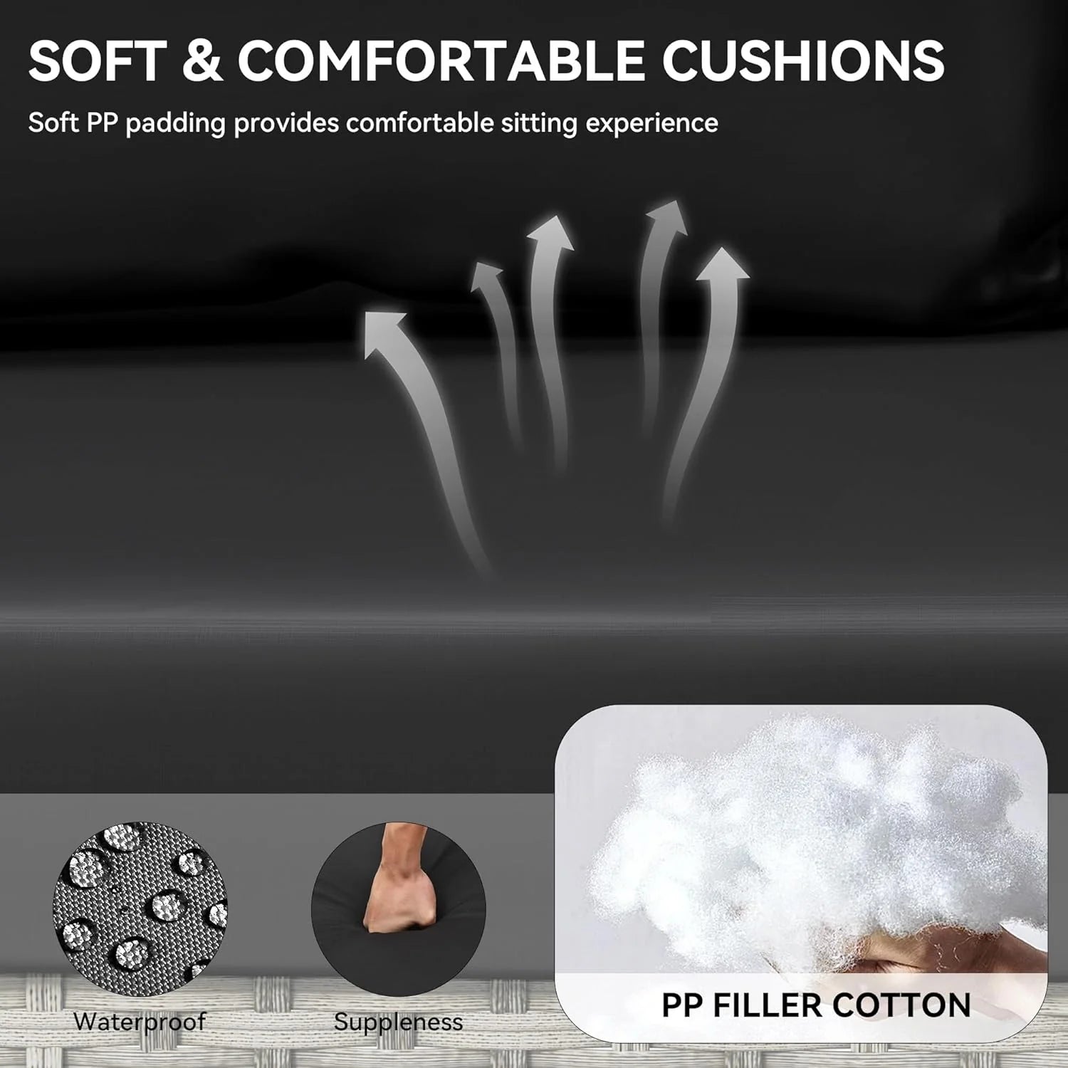 - Ultimate Comfort: The thick armrests (1.97" each) provide support, while the 1.57"-thick cushions offer the great firmness for long hours of sitting. The back cushions, padded with 700g fibre, ensure maximum comfort. Plus, drizzle-proof and removable covers make cleaning a breeze